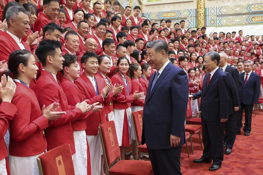 ขณะพบปะกับคณะผู้แทนโอลิมปิกของจีน ณ อาคารมหาศาลาประชาชน สีจิ้นผิง เลขาธิการใหญ่คณะกรรมการกลางพรรคคอมมิวนิสต์จีนและประธานคณะกรรมาธิการการทหารส่วนกลาง กระตุ้นคณะนักกีฬาโอลิมปิกเพิ่มความพยายามสร้างจีนสู่มหาอำนาจทางกีฬาต่อไป