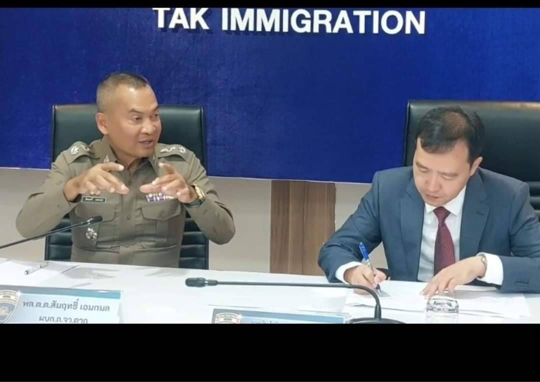 ทางด้าน พล.ต.ต.สัมฤทธิ์ เอมกมล ผู้บังคับการตำรวจภูธร กล่าวว่า วันนี้ทางกงศุลใหญ่แห่งสาธารณรัฐประชาชนจีนประจำเชียงใหม่ ได้เข้ามาขอบคุณรัฐบาลไทย ขอบคุณสำนักงานตำรวจแห่งชาตและขอบคุณตำรวจจังหวัดตาก ด่าน ตม.ตาก ที่ช่วยกันดูแลคนจีนที่เข้ามาในพื้นที่ ซึ่งระหว่างการเดินทางกงศุลจีนได้ชื่นชม การปฏิบัติหน้าที่ตามด่านตรวจแม้แต่ตัวกงศุลจีนยังถถูกตรวจสอบนอกจากนี้ยังได้ลงไปดูป้ายประชาสัมพันธ์ การแจ้งเตืนชาวต่างชาติถึง 7 ภาษา