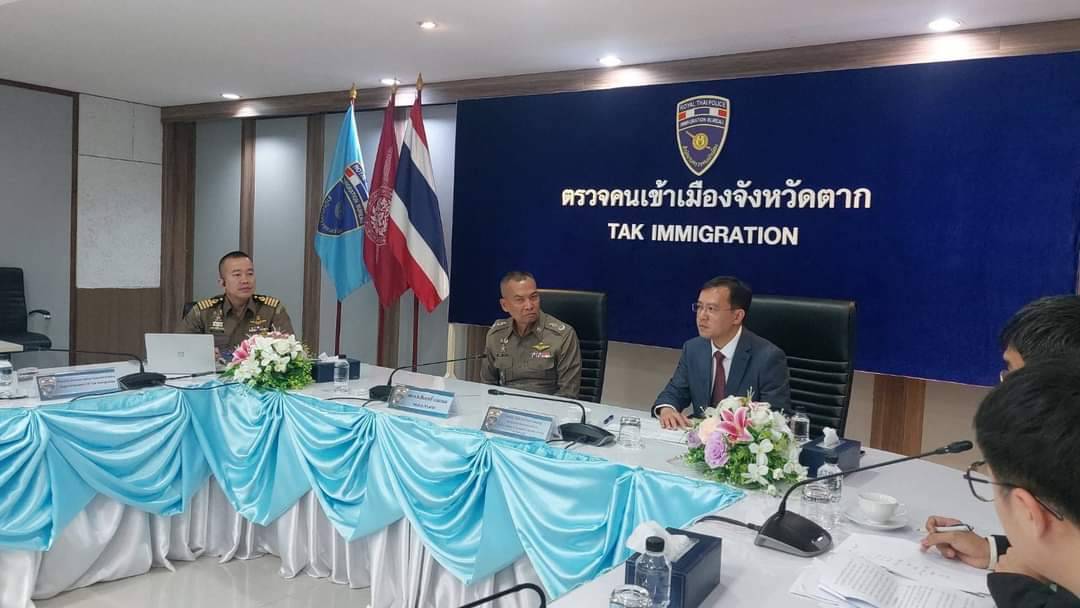 เมื่อวันที่ 24 มกราคม .2568 ที่บริเวณสำนักงานด่านตรวจคนเข้าเมืองจังหวัดตากแม่สอดชั้น 5 ต.ท่าสายลวด อ.แม่สอด จ.ตากพล.ต.ต.สัมฤทธิ์ เอมกมล ผู้บังคับการตำรวจภูธร จ.ตาก พร้อมด้วยพ.ต.อ.บวรภพ สุนทรเรขา ผกก.ด่านตรวจคนเข้าเข้าเมือง จ.ตากแม่สอดให้การต้อนรับ นายเฉิน ไห่ผิง กงศุลใหญ่แห่งสาธารณรัฐประชาชนจีนประจำเชียงใหม่พร้อมคณะ ที่ได้เดินทางมายังพื้นที่ อ.แม่สอด เพื่อขอบคุณเจ้าหน้าที่ตำรวจไทยและสานสัมพันธ์ รับทราบข้อมูลในการร่วมกันแก้ไขปัญหา การหลอกลวงหรือถูกล่อลวง ข้ามชายแดนไทยไปยังฝั่งเมียนม่าร์ ให้ทำงานเกี่ยวกับแก๊งคอลเซ็นเตอร์ อาชญากรรมทางเทคโนโลยี