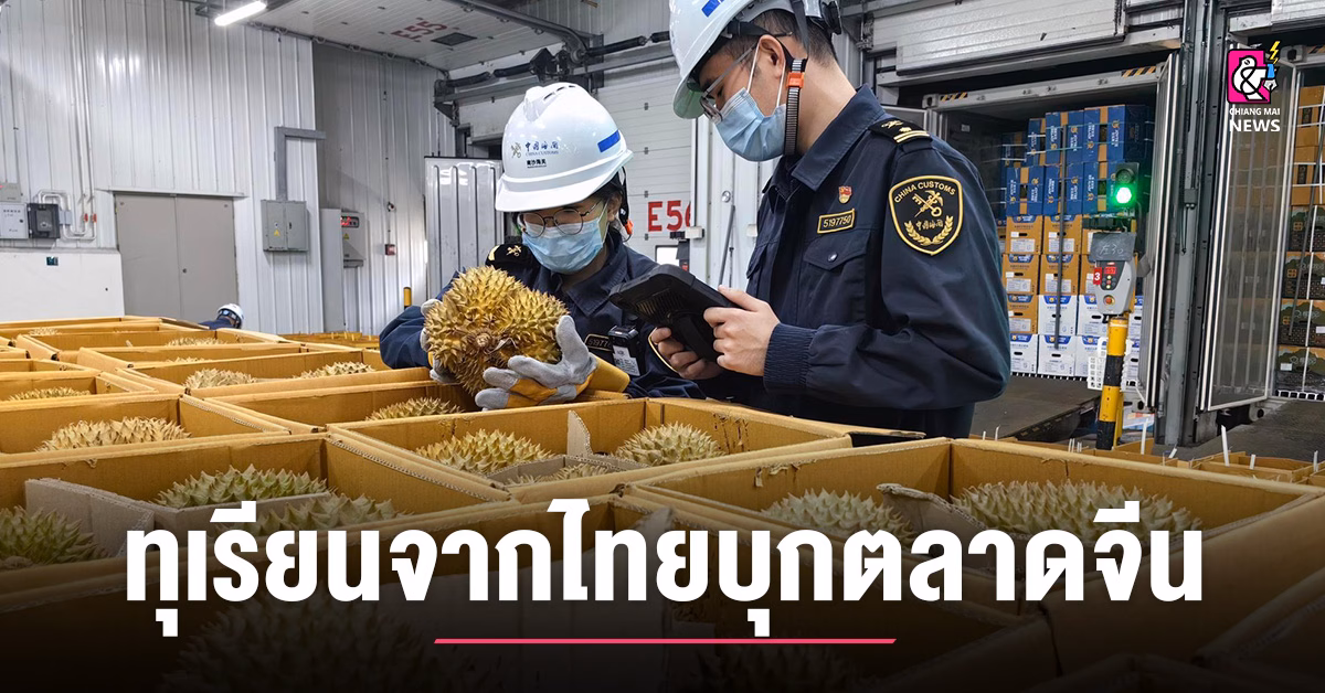 (แฟ้มภาพซินหัว : เจ้าหน้าที่ศุลกากรหนานซา เมืองกว่างโจว มณฑลกว่างตงทางตอนใต้ของจีน ตรวจสอบทุเรียนสดนำเข้า วันที่ 26 เม.ย. 2026)