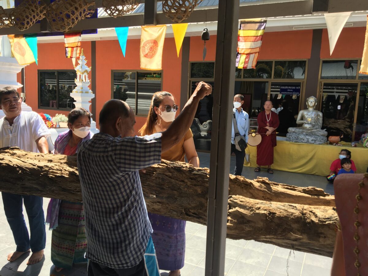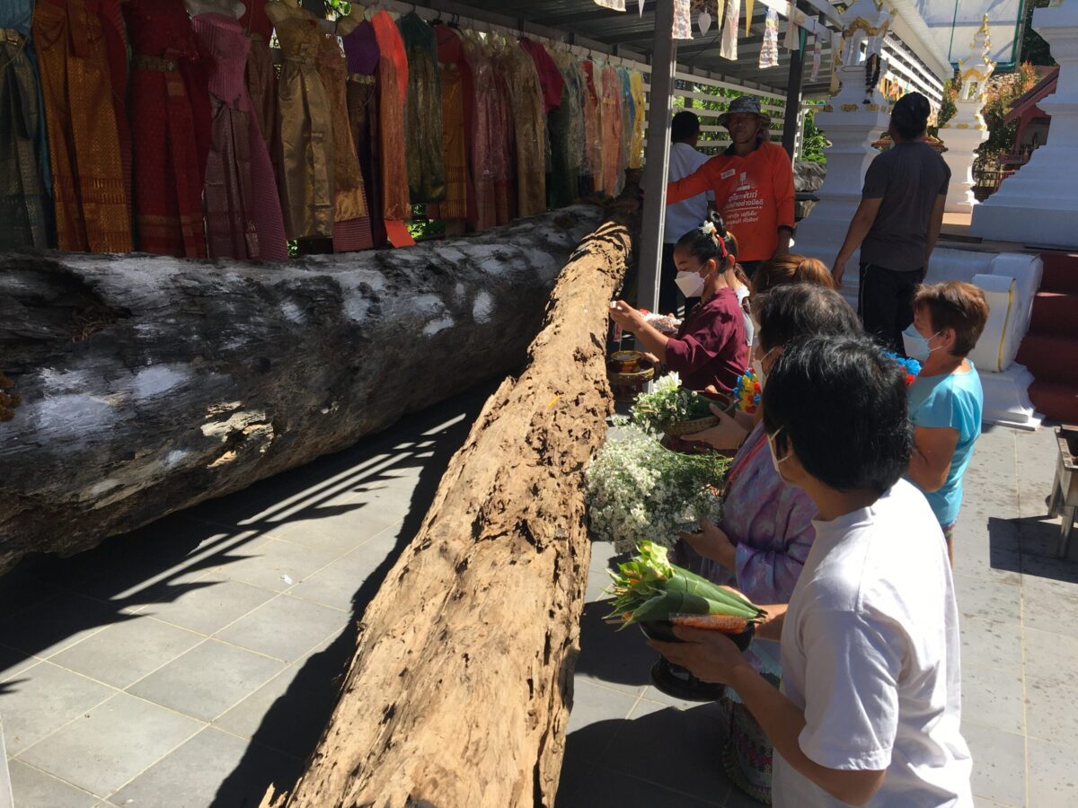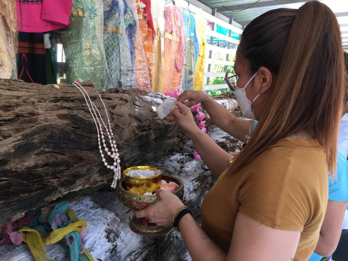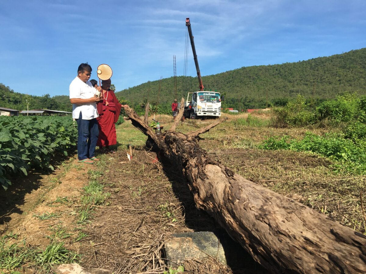 เมื่อเวลา 09.09 น.วันที่ 25 มิ.ย.2565 ผู้สื่อข่าวรายงานที่ทุ่งนาของนายสมบัติ เจริญทรัพย์ เจ้าของน้ำแร่ชื่อดัง อยู่เลขที่ 8/1 บ้านแม่เตาดิน หมู่ 4 ต.ห้วยแก้ว อ.แม่ออน จ.เชียงใหม่ ได้นิมนต์พระครูปลัดกฤต ฐิตวิริโย หรือพระอาจารย์โต เจ้าอาวาสวัดพระบาทปางแฟน อ.ดอยสะเก็ด จ.เชียงใหม่ นำน้ำมนต์ ดอกไม้ ธูปเทียน ทำพิธีเชิญต้นตะเคียนทองออกจากที่นาของนายสมบัติ เพื่อนำไปไว้ที่วัดพระบาทปางแฟน เป็นคู่กับแม่นางตะเคียนทอง ชื่อแม่นางมั่น ต้นใหญ่ขนาด 3 คนอบ ถือว่าเป็นต้นพี่ ส่วนต้นที่นำเข้าวัดต้นที่ 2 ของนายสมบัติ ต้นเล็กกว่ามาก ถือว่าเป็นต้นน้อง จึงเรียกตะเคียนสองนาง และชาวบ้านยังมองไปท้องฟ้าพบพระอาทิตย์ทรงกลดถือว่าเป็นวันมงคลวันเสาร์นี้ด้วย