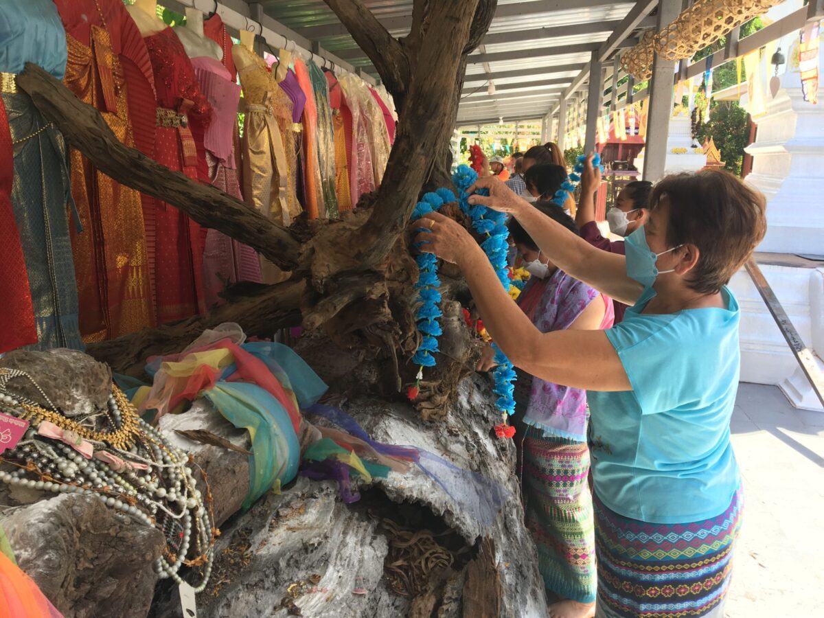 หลังเสร็จการย้านต้นตะเคียน ชาวบ้านก็นำดอกไม้ธูปเทียน แผ่นทอง และแป้งฝุ่น ขอพรทันที ก็พบเลขเด็ดแตกต่างกันออกไป เช่น เลข 25 และ 36 จากนั้นก็ยังมองไปที่ทะเบียนรถยกที่ขนย้ายต้นตะเคียน ในวันนี้ คัดเดียวกันกับที่ย้านในทุ่งนาของนายสมบัติ เจ้าของต้นตะเคียน คือ เลข 82-3322 และลูกศิษย์บางคนมาทำบุญที่วัดพระบาทปางแพน เลขทะเบียนรถใหม่ป้ายแดง มาจาก อ.ฮอต จ.เชียงใหม่ ก็มีเลขสวน คือเลข 3238 ก็ถือว่าเลขเด็ดด้วย