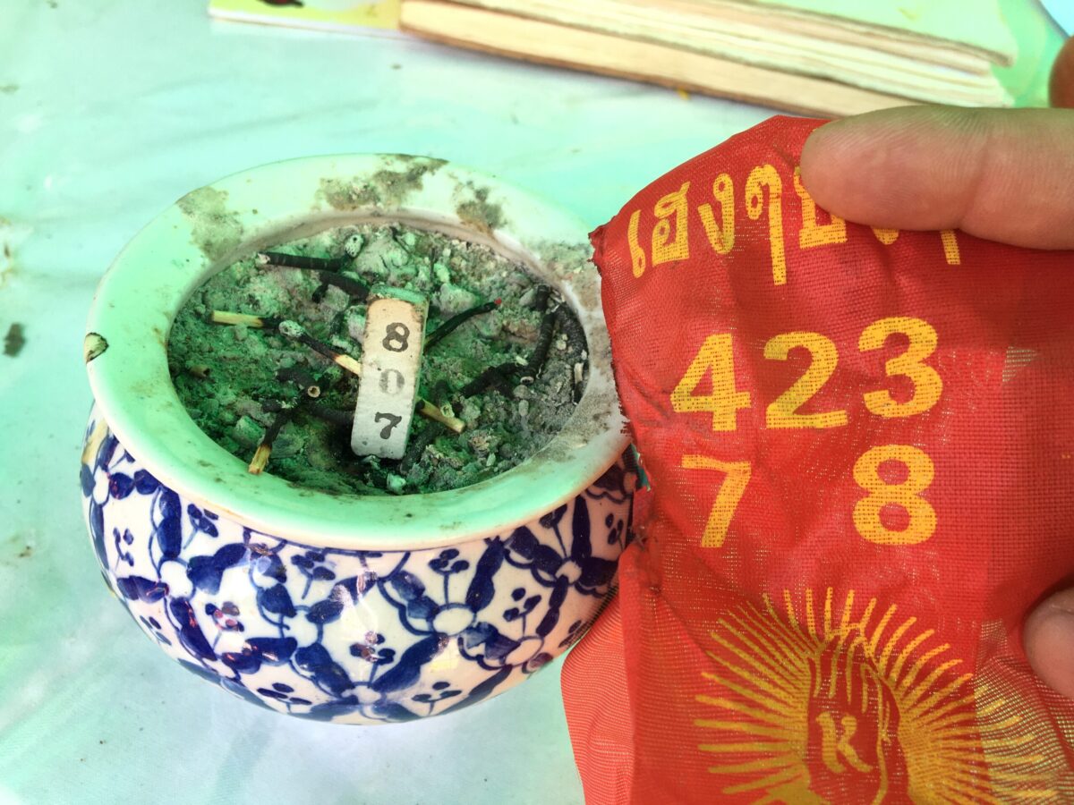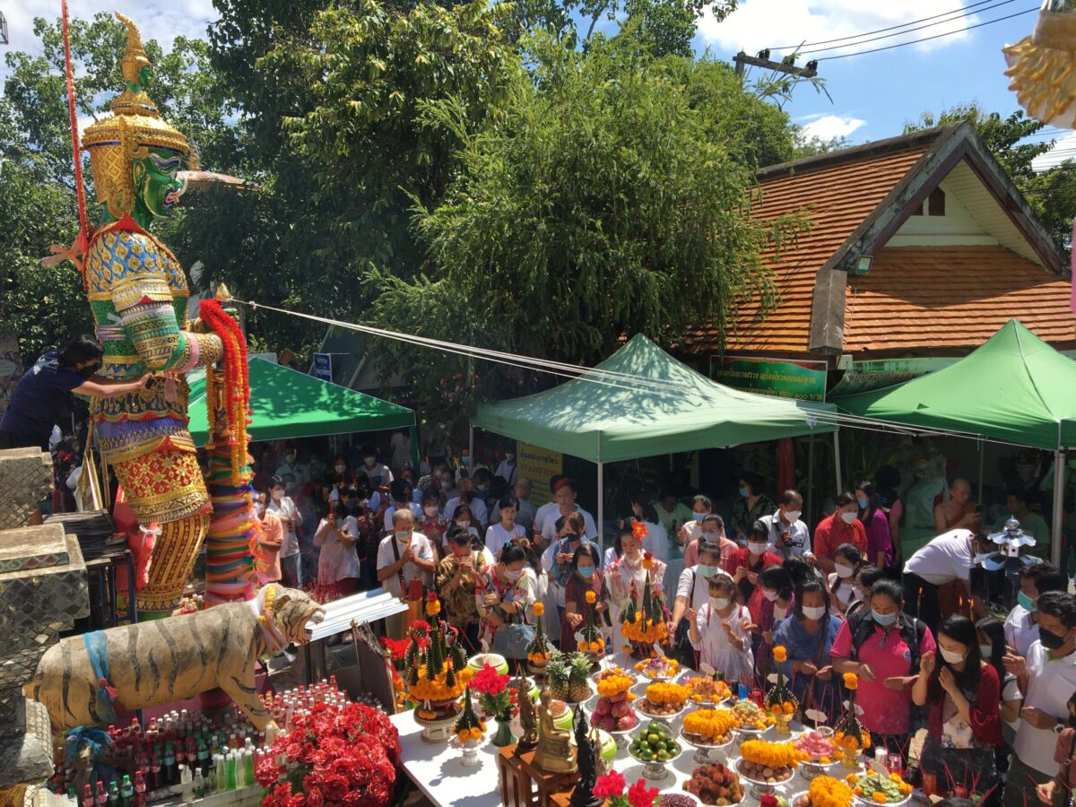 เลขเด็ด ธูปและห่างประทัด บวงสรวงท้าวเวสสุวรรณ หน้าเทพและหน้ายักษ์ วัดพระนอนแม่ปูคา จ.เชียงใหม่