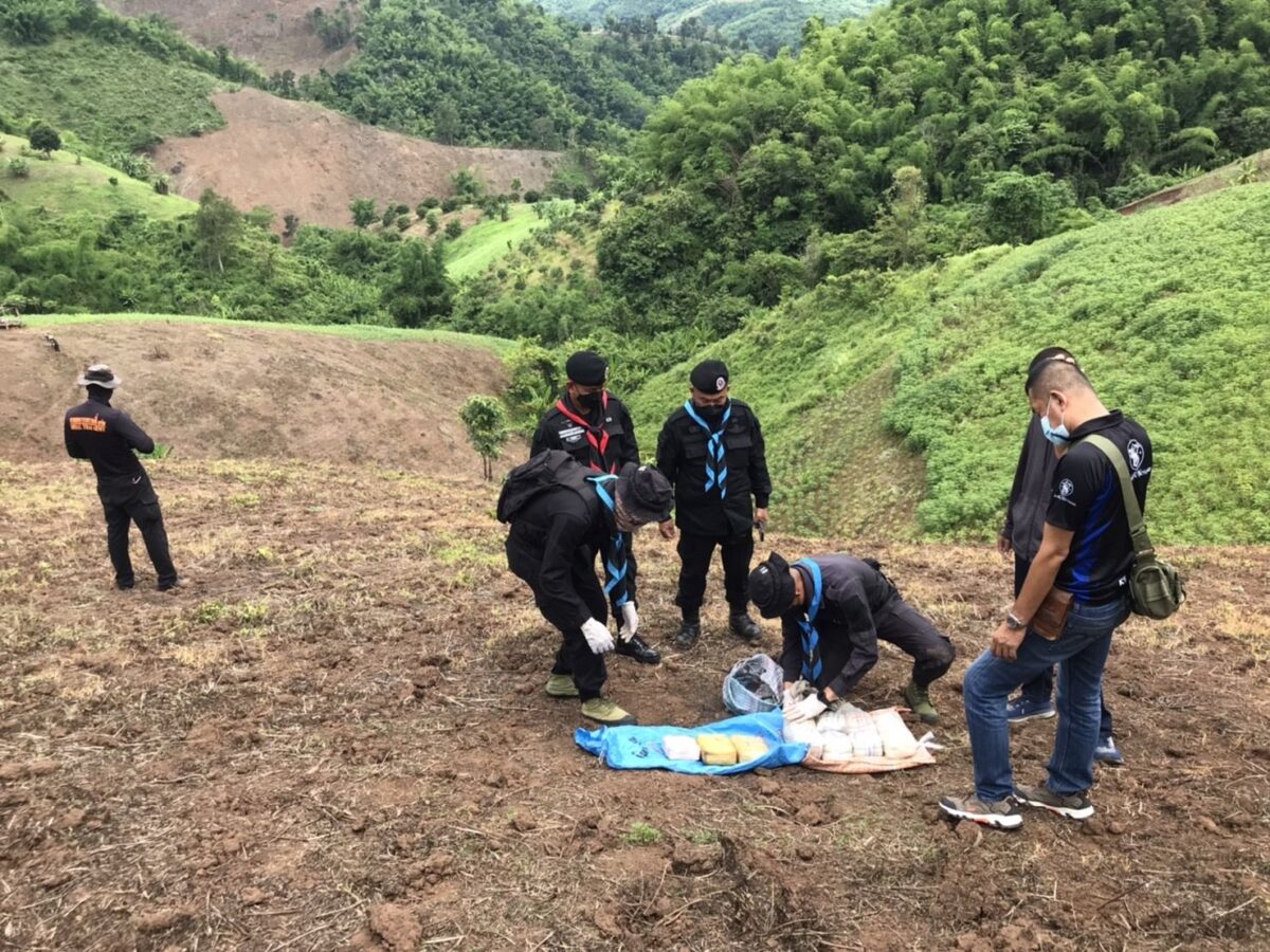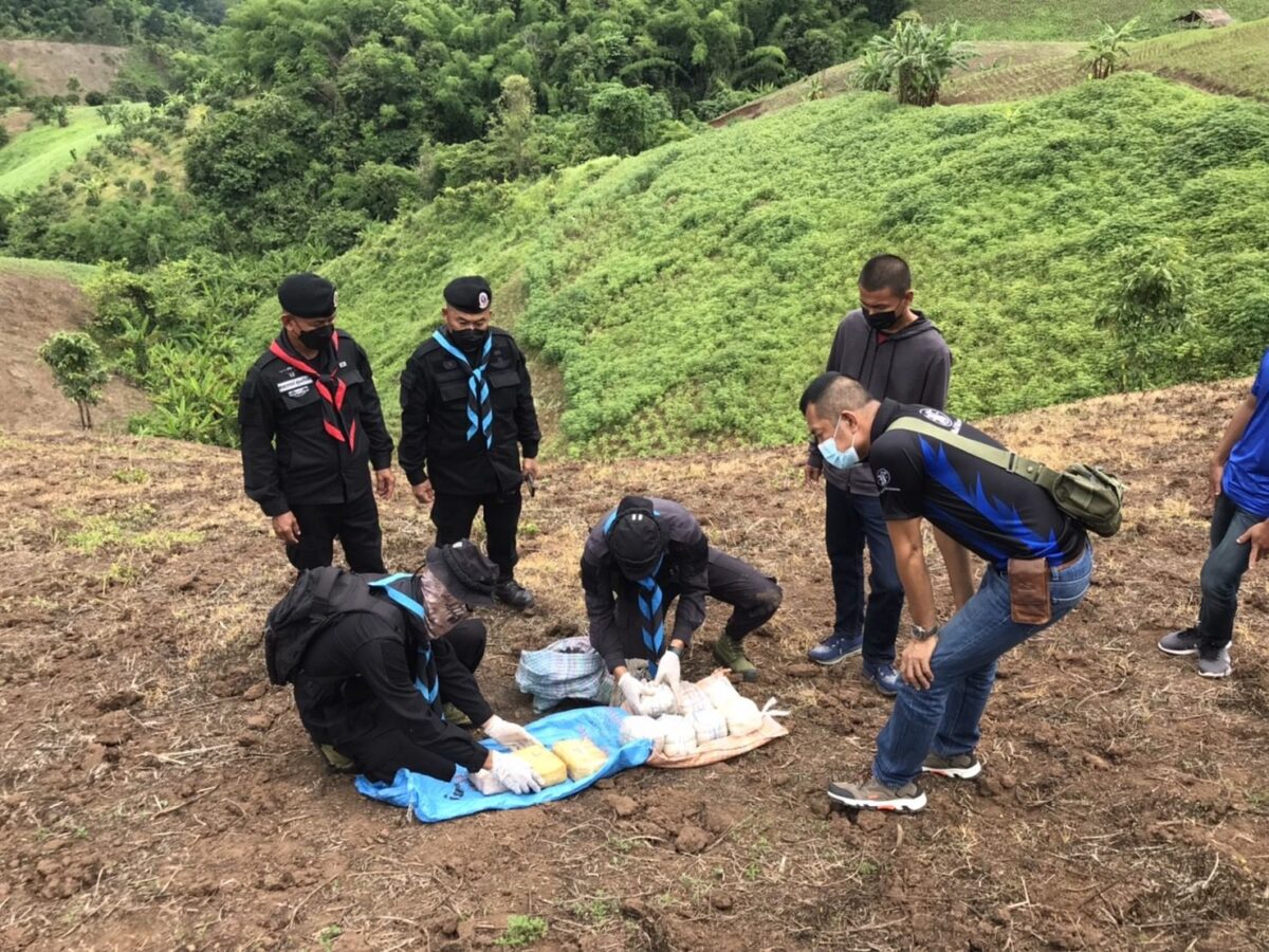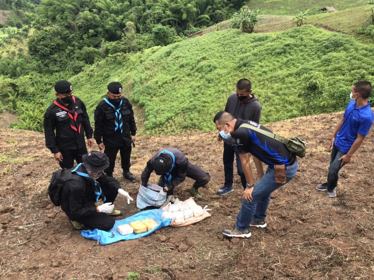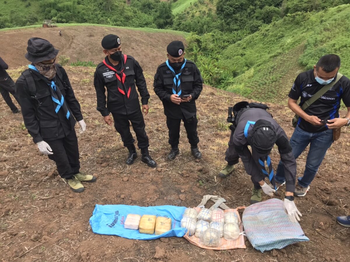 30 มิ.ย. 65 ร้อย.ทพ.3201 บก.ควบคุม ทพ.ศปก.ทภ.3 จัด กพ. ลว.พิสูจน์ทราบ และเฝ้าตรวจ บริเวณ ช่องทาง บ.ป่ากุ๋ย ม.3 ต.ท่าตอน อ.แม่อาย จว.ช.ม. ได้ตรวจพบชายต้องสงสัย สะพายกระสอบฟางดัดแปลงเป็นเป้สะพายหลัง เดินขึ้นมาจากช่องทาง บ.ป่ากุ๊ยฯ ผ่านเข้ามาในพื้นที่จึงได้แสดงตัวขอตรวจค้น แต่บุคคลชายคนดังกล่าวได้วิ่งหลบหนีกลับไปยังทิศทางฝั่งประเทศเพื่อนบ้าน ระหว่างหลบหนีได้ทิ้งกระเป๋าเป้ฯ ไว้ หน่วยจึงได้ประสาน จนท.ตร.สภ.แม่อาย เข้ามาดำเนินการตรวจสอบของกลาง โดยมีรายละเอียดดังนี