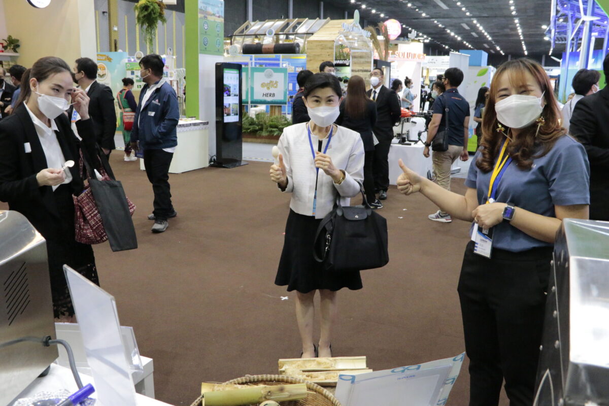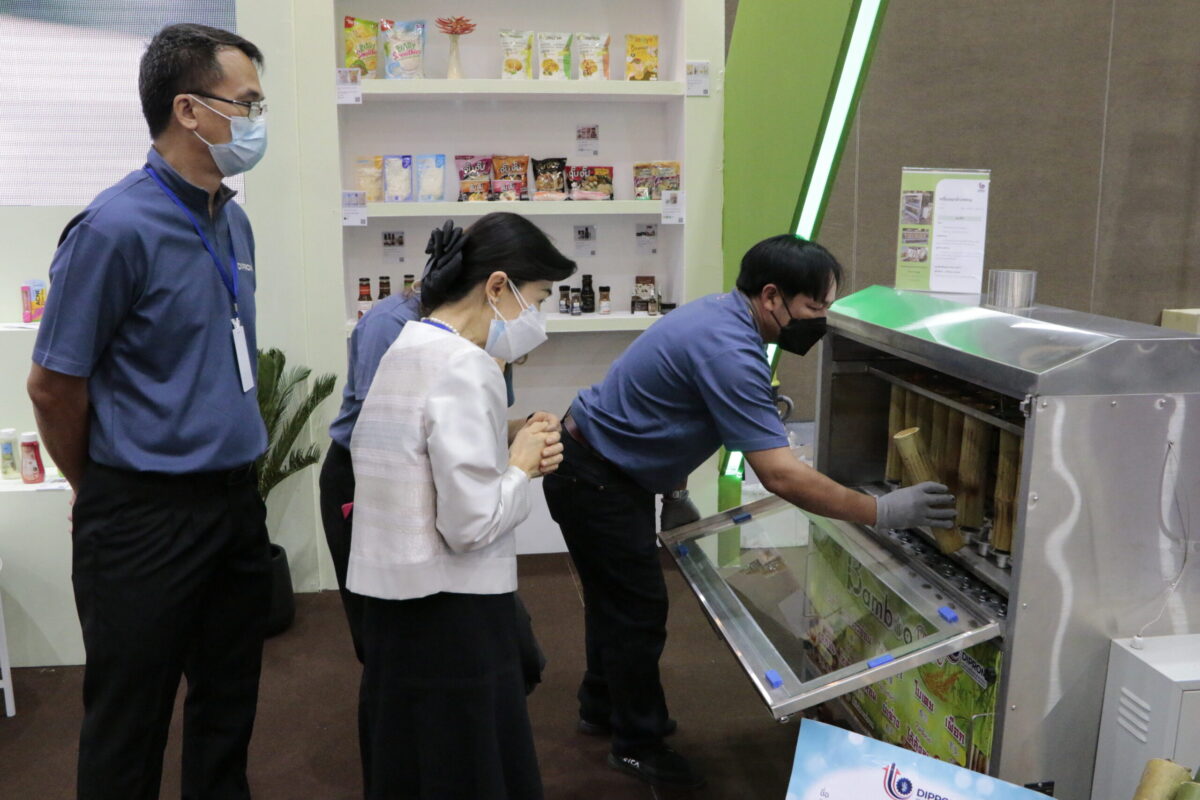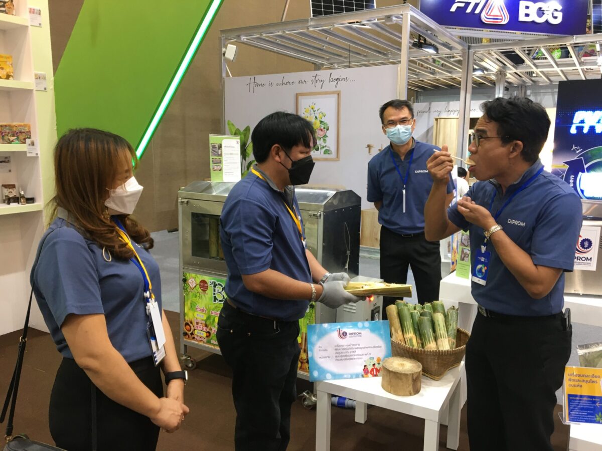 เมื่อวันที่ 29 มิ.ย. 2565 ในงาน FTI Expo 2022 ที่บูธเกษตรอุตสาหกรรมดีพร้อม กองพัฒนาเกษตรอุตสาหกรรม กรมสงเสริมอุตสาหกรรม กระทรวงอุตสาหกรรม หรือดีพร้อม (DIPROM) นางวราภรณ์ วรพงศธร ขนส่งจังหวัดเชียงใหม่ ได้เที่ยวชมบูธเกษตรอุตสาหกรรมดีพร้อม และเข้าไปชิมข้าวหลามเตาไฟฟ้า โดยมี นายสิทธิรงณ์ เร่งเงียบ ผอ.ศูนย์ส่งเสริมอุตสาหกรรม ภาคที่ 3 กรมส่งเสริมอุตสาหกรรม พร้อม ดร.อริยาพร อำนรรฆสรเดช ผอ.กองพัฒนาเกษตรอุตสากรรม กรมส่งเสริมอุตสาหกรรม ให้การต้อนรับและแนะนำเมนูข้าวหลามกระทิ ขนส่งเชียงใหม่ถึงกับยกนิ้วให้ และชมว่า อร่อยมากเพราะรับประทานข้าวหลามแบบอุ่นๆ ออกจากเตาไฟฟ้ามาแบบสดๆ ร้อนๆ