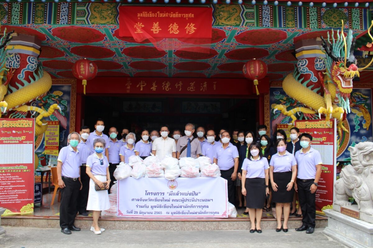 วันที่ 29 มิถุนายน 2565 เวลา 10.30 นาฬิกา นายวัฒนา ชินรัตน์ ผู้พิพากษาหัวหน้าศาลจังหวัดบุรีรัมย์ ช่วยทำงานชั่วคราวในตำแหน่งผู้พิพากษาหัวหน้าศาลจังหวัดเชียงใหม่ พร้อมด้วย นายสาโรจน์ เกษมถาวรศิลป์ ผู้พิพากษาอาวุโสในศาลจังหวัดเชียงใหม่ นางธนนันท์ ทะสุใจ ผู้อำนวยการสำนักอำนวยการประจำศาลจังหวัดเชียงใหม่ คณะผู้ประนีประนอมประจำศาลจังหวัดเชียงใหม่ และข้าราชการศาลจังหวัดเชียงใหม่ จัดโครงการ “มีแล้วแบ่งปัน” บริจาคอาหารและเครื่องอุปโภคบริโภค ณ มูลนิธิเชียงใหม่สามัคคีการกุศล ตำบลช้างคลาน อำเภอเมืองเชียงใหม่ จังหวัดเชียงใหม่