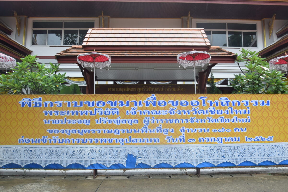 เมื่อวันที่ 30 มิถุนายน 2565 ผู้ที่จะบรรพชา อุปสมบท จำนวน 174 รูป/คน บวชพระ 79 รูป บรรพชาสามเณร 95 รูป กราบขอขมา พระเทพปริยัติ เจ้าคณะจังหวัดเชียงใหม่ โดยมีพระวิมลมุนี รองประธานคณะพระธรรมจาริก รูปที่ 1 รองอธิการบดี มจร.วิทยาเขตเชียงใหม่ กล่าวถวายรายงาน และกราบลาเพื่อขออโหสิกรรมก่อนเข้าพิธีบรรพชา อุปสมบท ต่อ นายศักดิ์ชัย คุณานุวัฒน์ชัยเดช รองผู้ว่าราชการจังหวัดเชียงใหม่ มี น.ส.สุวรีย์ ไชยวงศ์ ผู้อำนวยการ ศูนย์พัฒนาราษฎรบนที่สูงจังหวัดเชียงใหม่ กล่าวรายงาน ก่อนจะเดินทางไปบรรพชา อุปสมบทที่ พระอุโบสถวัดเบญจมบพิตร กรุงเทพฯ ในวันที่ 2 – 3 กรกฎาคม 2565 และจะมาอุปสมบทต่อ ที่พระอุโบสถวัดศรีโสดา พระอารามหลวง ต่อเนื่อง ในวันที่ 4 กรกฎาคม 2565 ประกอบพิธีภายใต้มาตรการป้องกันการแพร่ระบาด ของโรคติดเชื้อไวรัสโคโรนา 2019 (โควิด-19) อย่างเคร่งครัด ณ วัดศรีโสดา พระอารามหลวง ตำบลสุเทพ อำเภอเมืองเชียงใหม่