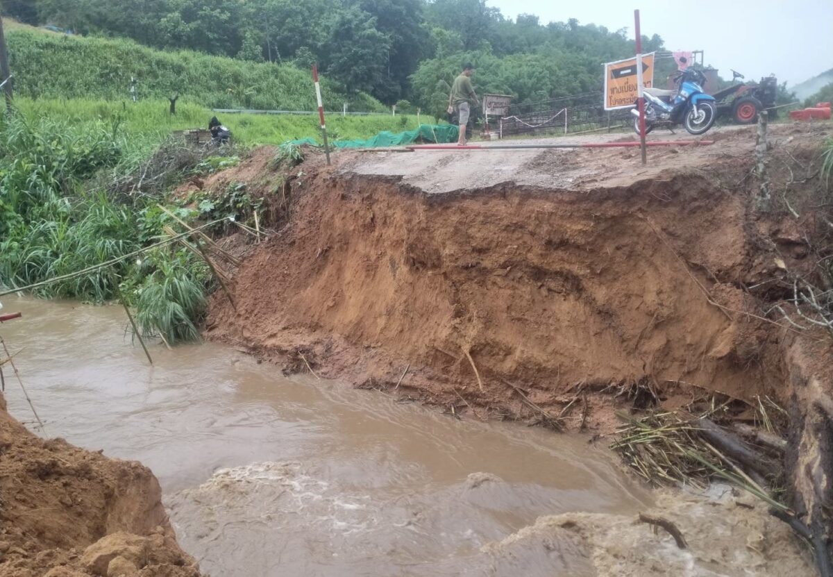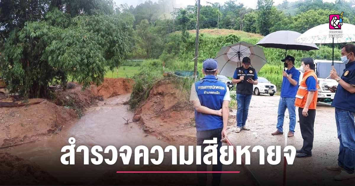 นอ.สะเมิงนำทีมสำรวจความเสียหายจากพายุฝน ต.แม่สาบ หมู่ที่ 3 น้ำกัดเซาะตลิ่งพัง เร่งประสานการแก้ไขซ่อมแซม