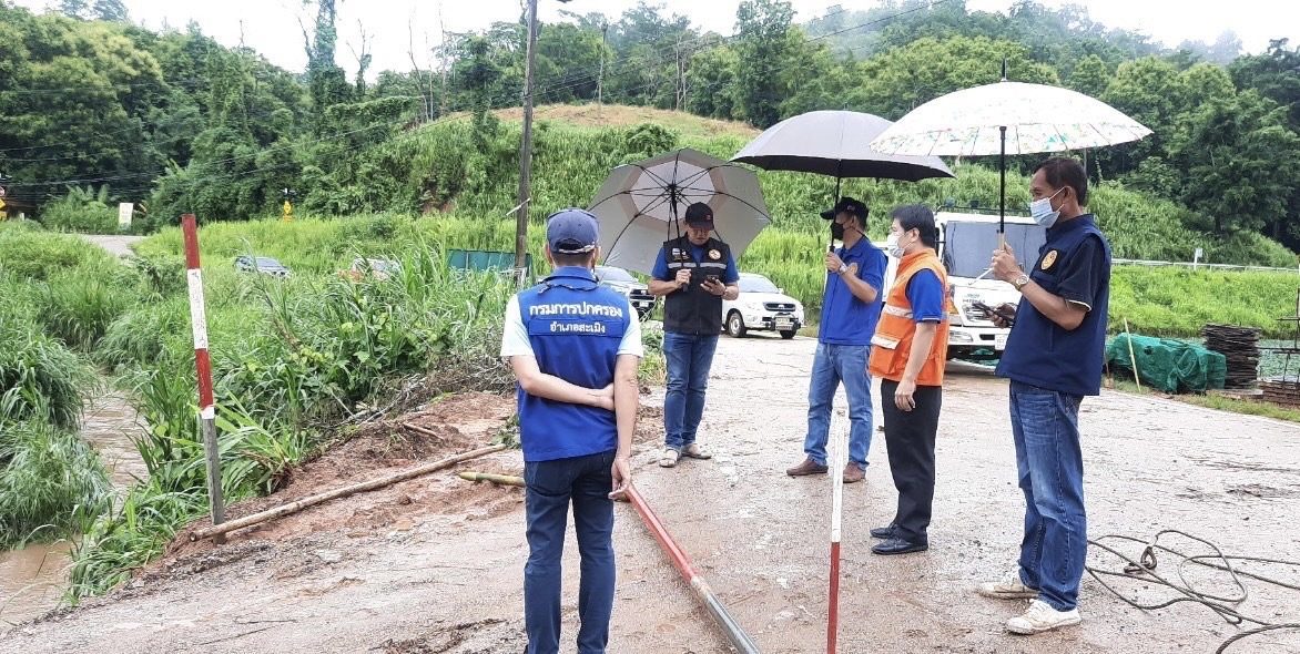 วันที่ 1 กรกฎาคม 2565 เวลา 09.30 น. นายณฐกร ภัทรวนนท์ นายอำเภอสะเมิง พร้อมด้วย นายนิพนธ์ สุวรรณ์ ปลัดอำเภอฝ่ายความมั่นคง นายสว่าง กันทะวัง ปภ.ชม.สาขาสะเมิง นายพัฒนพงษ์ ไชยสุภา นายก อบต.แม่สาบ นายบุญศรี สายบุญมา กำนัน ต.แม่สาบ ได้ลงสำรวจพื้นที่ได้รับผลกระทบจากพายุฝน เมื่อคืนวันที่ 1 กรกฎาคม 2565 ที่ผ่านมา ทำให้เกิดน้ำไหลหลาก กัดเซาะตลิ่ง ได้รับความเสียหาย ในพื้นที่หมู่ที่ 3 ต.แม่สาบ อ.สะเมิง จ.เชียงใหม่ โดยได้ประสานหน่วยงานที่เกี่ยวข้องเข้าทำการแก้ไขซ่อมแซมแล้ว