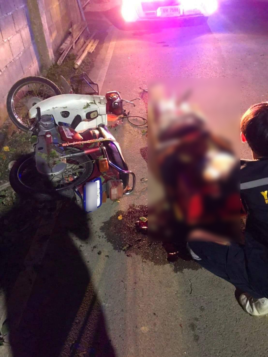 เมื่อเวลา 02.45 น. วันที่ 3 ก.ค. 2565 พนักงานสอบสวน สภ.สารภี จ.เชียงใหม่รับแจ้งมีอุบัติเหตุรถจยย.ชนเสากำแพงรั้วบ้าน ในซอยโรงงานยาสูบไซเอม ต.ยางเนิ้ง อ.สารภี มีผู้เสียชีวิต 1 ราย จึงรุดไปสอบสวนพร้อมด้วยกู้ชีพฯ ทต.ยางเนิ้ง พบที่เกิดเหตุมีรถ จยย.ทะเบียน พ xxxx ล้มคว่ำอยู่ชนเข้ากับเสากำแพงบ้าน และมีร่างของชายคนหนึ่งนอนหงายอยู่ข้าง จยย.สลบเหมือดไม่ได้สติ กู้ชีพฯ ทำการปฐมพยาบาลเบื้องต้นแล้วนำส่ง รพ.สารภี และสิ้นใจในเวลาต่อมา