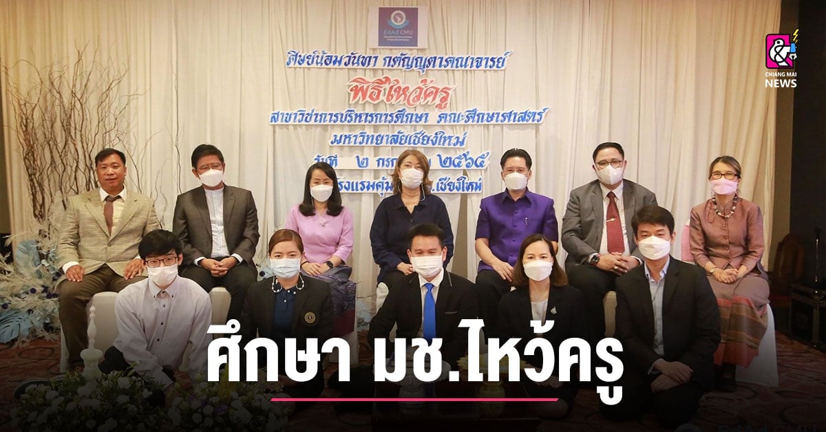 วันเสาร์ที่ 2 กรกฎาคม 2565 เวลา 17.00น. รองศาสตราจารย์ ดร.เกียรติสุดา ศรีสุข คณบดีคณะศึกษาศาสตร์ มหาวิทยาลัยเชียงใหม่ ได้ให้เกียรติเป็นประธานพิธี “ศิษย์น้อมวันทา กตัญญุตาคณาจารย์” ประจำปีการศึกษา 2565 ของหลักสูตรมหาบัณฑิตและดุษฎีบัณฑิต สาขาวิชาการบริหารการศึกษา คณะศึกษาศาสตร์ มหาวิทยาลัยเชียงใหม่ โดยมีคณาจารย์ประจำหลักสูตรและนักศึกษาเข้าร่วมพิธี กิจกรรมในพิธีประกอบด้วย กิจกรรมกล่าวคำไหว้ครู มอบพานดอกไม้ธูปเทียนเพื่อฝากตัวเป็นศิษย์ และการผูกข้อมือรับขวัญ ณ ห้องสุพรรณิการ์ โรงแรมคุ้มภูคำ จังหวัดเชียงใหม่
