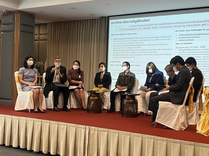 เมื่อวันที่ 23-24 มิถุนายน 2565 รองศาสตราจารย์ ดร.กัลทิมา พิชัย, รองศาสตราจารย์ ดร.วัชรพงษ์ วัฒนกูล รองอธิการบดี มหาวิทยาลัยราชภัฏเชียงใหม่ พร้อมด้วย อาจารย์ ดร.อัครสิทธิ์ บุญส่งแท้ ผู้อำนวยการสถาบันวิจัยและพัฒนา ผู้ช่วยศาสตราจารย์อัตถ์ อัจฉริยมนตรี คณบดีคณะเทคโนโลยีการเกษตร ผู้ช่วยศาสตราจารย์เยี่ยมลักษณ์ อุดาการ คณบดีคณะครุศาสตร์ รองศาสตราจารย์ ดร.สัญญา สะสอง คณบดีคณะมนุษยศาสตร์และสังคมศาสตร์ ผู้ช่วยศาสตราจารย์ ดร.ศุภฤกษ์ ธาราพิทักษ์วงศ์ คณบดีคณะวิทยาการจัดการ อาจารย์ ดร.ชาญ ยอดเละ คณบดีคณะวิทยาศาสตร์และเทคโนโลยี และ อาจารย์ ดร.วรจิตต์ เศรษฐพรรค์ ในฐานะรองผู้อำนวยการ หน่วยบริหารและจัดการทุนด้านการพัฒนากำลังคน และทุนด้านการพัฒนาสถาบันอุดมศึกษา การวิจัยและสร้างนวัตกรรม (บพค.) เข้าร่วมกิจกรรมสร้างการรับรู้ (ร่าง) แผนปฏิบัติการเชิงยุทธศาสตร์ (Strategic Action Plan) มหาวิทยาลัยราชภัฏ ระยะ 5 ปี (พ.ศ. 2566-2570) และกิจกรรมการประชุมเชิงปฏิบัติการเพื่อกำหนดข้อเสนอโครงการริเริ่มสำคัญระดับภูมิภาคของมหาวิทยาลัยราชภัฏกลุ่มภาคเหนือ โดยมีคณะทำงานจากสำนักงานสภานโยบายการอุดมศึกษา วิทยาศาสตร์ วิจัยและนวัตกรรมแห่งชาติ (สอวช.) หน่วยบริหารและจัดการทุนด้านการพัฒนากำลังคน และทุนด้านการพัฒนาสถาบันอุดมศึกษา การวิจัยและการสร้างนวัตกรรม (บพค.) และหน่วยบริหารและจัดการทุนด้านการพัฒนาระดับพื้นที่ (บพท.) เป็นวิทยากร สร้างการรับรู้แผนปฏิบัติการกำหนดทิศทางแผนปฏิบัติเชิงยุทธศาสตร์ (Strategic Action Plan) มหาวิทยาลัยราชภัฏระยะ 5 ปี (พ.ศ. 2566 – 2570) ให้แก่ผู้บริหารมหาวิทยาลัยราชภัฏกลุ่มภาคเหนือ เพื่อร่วมกันกำหนดเป้าหมายและข้อเสนอสำคัญของภูมิภาค สร้างความเข้าใจต่อกระบวนการส่งเสริมและพัฒนาคน และการพัฒนาวิทยาศาสตร์ วิจัยและนวัตกรรม (ววน.) ในการขับเคลื่อนการทำงานการพัฒนาเชิงพื้นที่