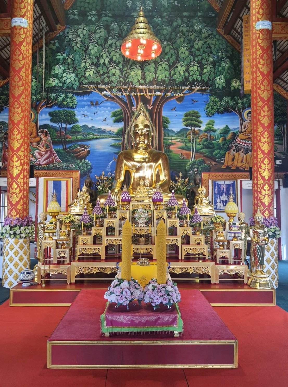 ยัคเฆ ภันเต สังโฆ ปะฏิชานาตุ มะยัง ภันเต เอตัง ปะทีปะยุคัง สะปะริวารัง เตมาสัง พุทธัสสะ ปูชะนัตถายะ อิมัสมิง อุโปสะถาคาเร นิยยาเทมะ สาธุ โน ภันเต อะยัง เตมาสัง พุทธัสสะ ปูชะนัตถายะ ปะทีปะยุคัสสะ ทานัสสะ อานิสังโส อัมหากัญเจวะ มาตาปิตุอาทีนัญจะ ปิยะชะนานัง ทีฆะรัตตัง หิตายะ สุขายะ สังวัตตะตุฯ