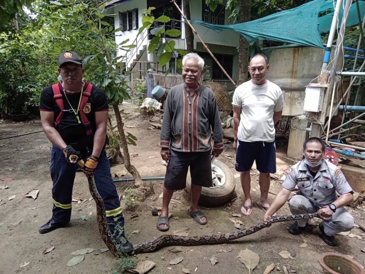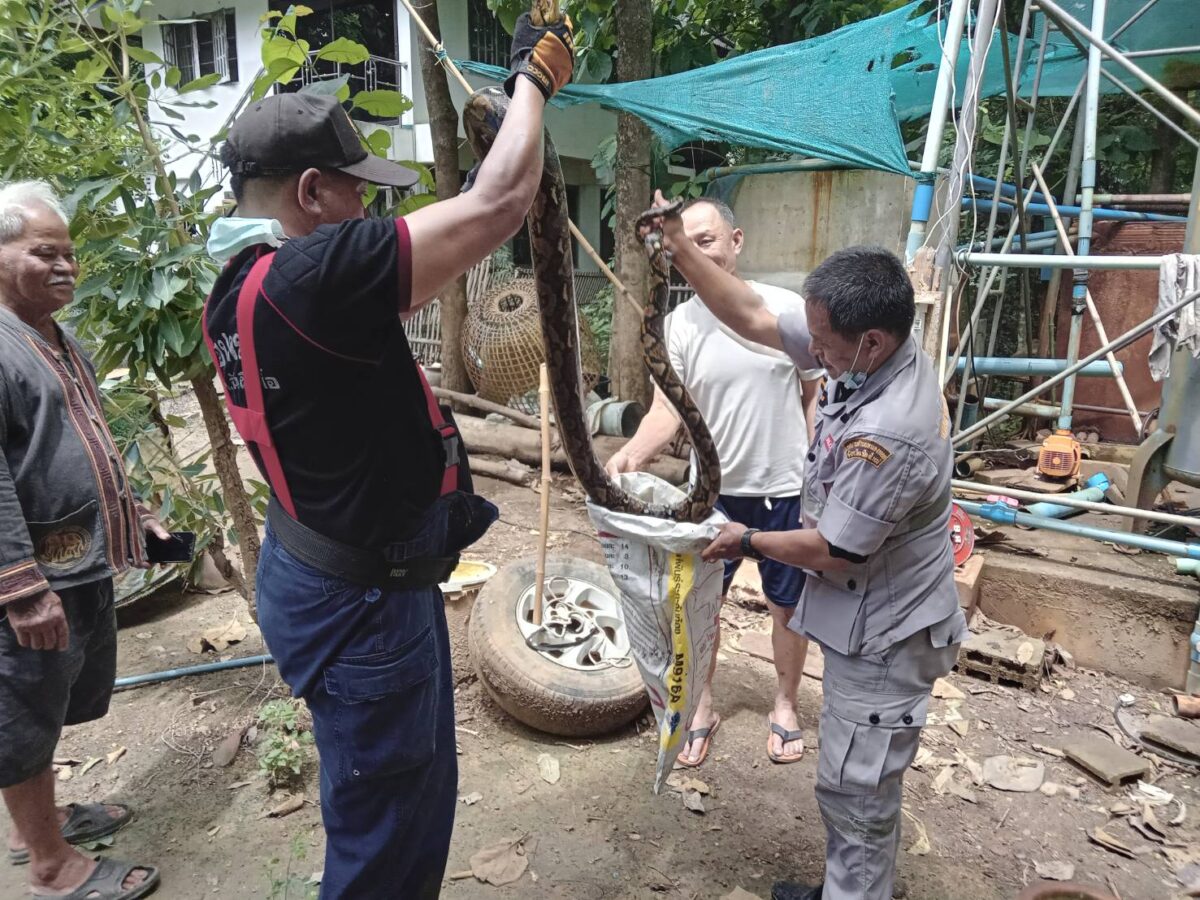 เวลา 10.00 น. วันที่ 10 ก.ค. 65 เจ้าหน้าที่งานป้องกันเทศบาลตำบลหนองหอย อำเภอเมือง จังหวัดเชียงใหม่ ได้รับแจ้งเจ้าของบ้านสวนยามเย็น บ้านหมู่ที่ 3 ว่านายชัยวิช อายุ 65 ปี พบงูเหลือมขนาด 3 เมตร เขมือบไก่ในบ้านที่เลี้ยงไว้ไป 1 ตัว งูเหลือมตกใจเลื้อยไปที่เก็บน้ำในแท็งค์บาดาลบริเวณข้างล่าง สี่เหลี่ยมมีความลึกขนาด 2 เมตร กว้าง 2 เมตร รีบแจ้งเจ้าหน้าที่ป้องกันฯ จึงทำการสูบน้ำออก ใช้เวลาจับ ชั่วโมงครึ่งดำเนินการจับเป็นที่เรียบร้อยนำปล่อยคืนสู่ธรรมชาติต่อไป