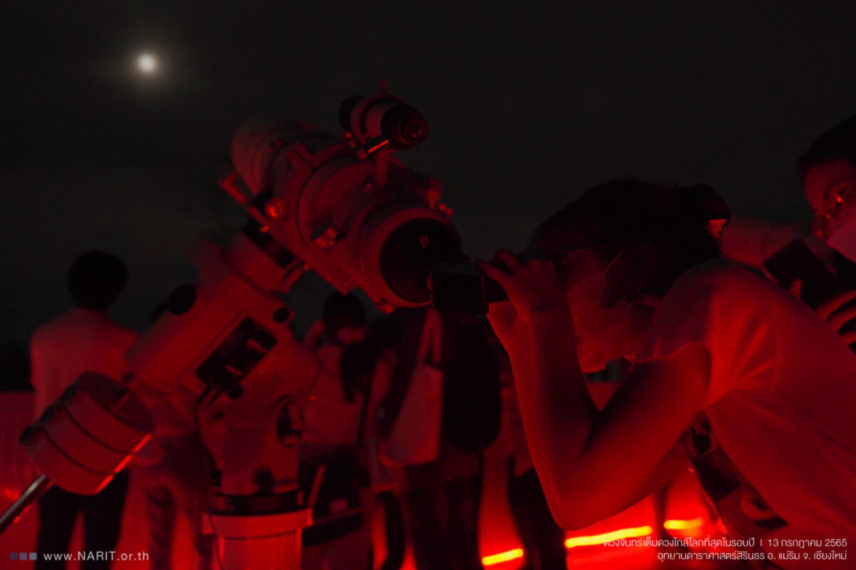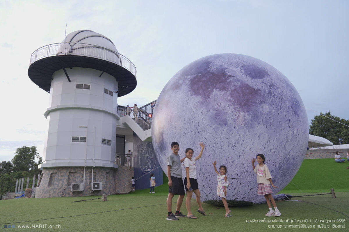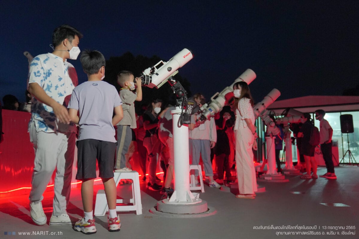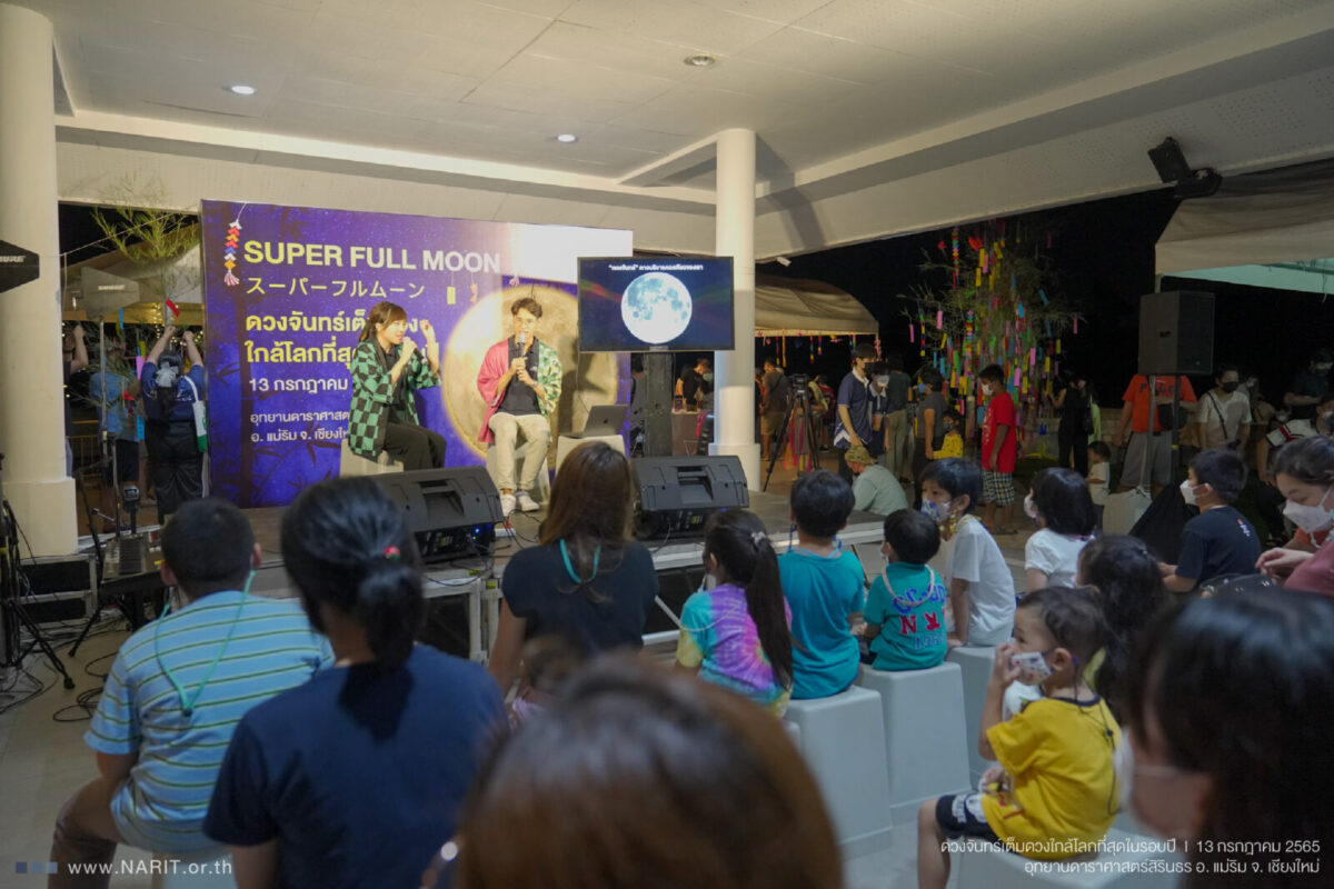 นายศุภฤกษ์ คฤหานนท์ ผู้อำนวยการ ศูนย์บริการวิชาการทางดาราศาสตร์ สดร. เปิดเผยว่า บรรยากาศการชมซูเปอร์ฟูลมูนคืนวันอาสาฬหบูชา 13 กรกฎาคม 2565 ภายในอุทยานดาราศาสตร์สิรินธร อ.แม่ริม จ.เชียงใหม่ มีประชาชนเดินทางเข้าร่วมกว่า 700 คน ร่วมชมดวงจันทร์เต็มดวงใกล้โลกที่สุดในรอบปีเคล้าเสียงดนตรีในสวน และแต่งกายธีมญี่ปุ่นถ่ายภาพคู่กับ “อภิมหาดวงจันทร์ยักษ์” เฉลิมฉลองดวงจันทร์เต็มดวงใกล้โลก