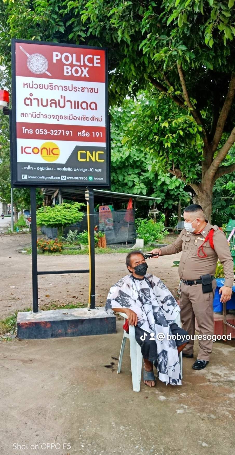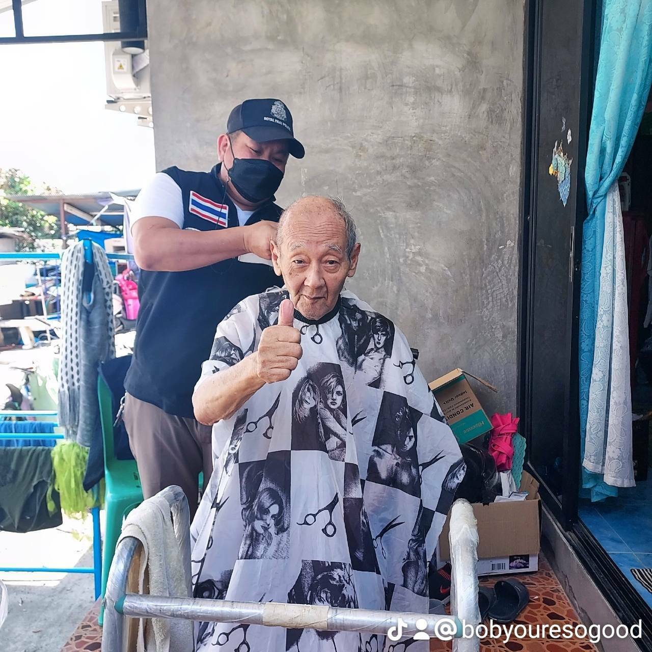 แห่ชื่นชม นายดาบตำรวจบ็อบบี้ ขวัญใจเด็กๆ และผู้พิการ ไอดเยเก๋ หลังใช้ตู้ยามบริการตัดผมฟรี และออกบริการถึงบ้านกรณีผู้สูงอายุ ผู้ป่วยติดเตียง
