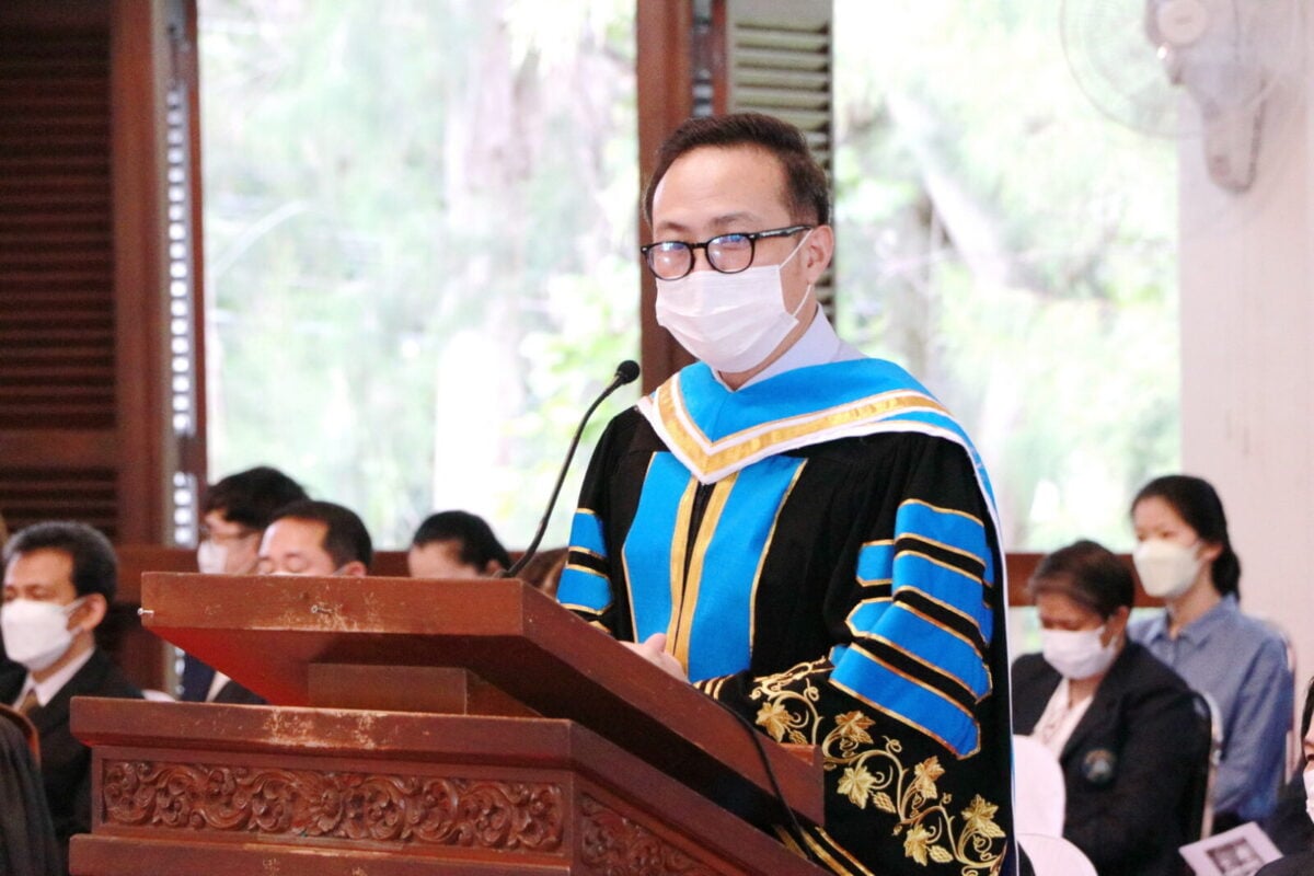 อาจารย์ อภิชา อินสุวรรณ รักษาการอธิการบดี ประธานพิธี ได้ให้ข้อคิดกับนักศึกษาในการเรียน 3 ระดับ คือ เรียนได้ เรียนดี เรียนเป็น