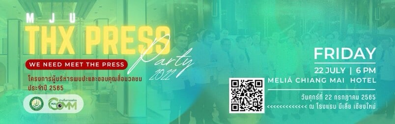มหาวิทยาลัยแม่โจ้ เตรียมจัดงาน MJU Thank you Press Party 2022 ผู้บริหารมหาวิทยาลัยพบปะและขอบคุณสื่อมวลชน ประจำปี 2565 กระชับความสัมพันธ์ชาวแม่โจ้ – พี่น้องสื่อมวลชน ในวันศุกร์ที่ 22 กรกฎาคม 2565 ณ โรงแรม MELIÃ Chiang Mai