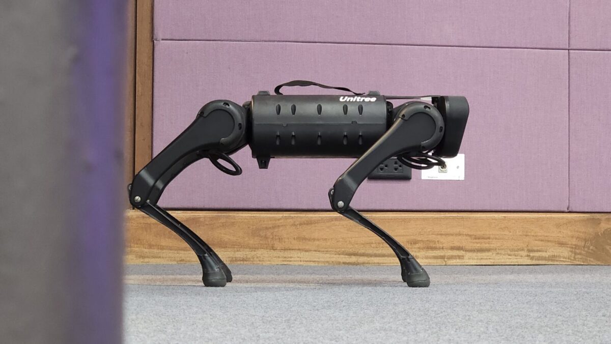 อีกหนึ่งชิ้นงานคือ หุ่นยนต์เคลื่อนที่แบบสี่ขา : Mobile Robot หรือที่รู้จักกันในนาม “หุ่นยนต์น้องหมา” ที่สาขาวิชาวิศวกรรมหุ่นยนต์และปัญญาประดิษฐ์นำมาใช้เป็นสื่อการสอนแก่นักศึกษาให้ได้เรียนรู้จากต้นแบบ เพื่อให้สามารถนำไปตกผลึกและใช้เป็นแนวทางในการคิดค้นและพัฒนาผลงานของตนเองได้ในอนาคต พร้อมกันนี้ รองคณบดีฝ่ายวิจัย นวัตกรรม และวิเทศสัมพันธ์ ผู้ช่วยศาสตราจารย์ ดร.ชัชวาลย์ ชัยชนะ เข้าร่วมพิธีเปิดงานดังกล่าว โดยมีอธิการบดีมหาวิทยาลัยเชียงใหม่ ศาสตราจารย์คลินิก นายแพทย์นิเวศน์ นันทจิต เป็นประธาน เมื่อวันที่ 22 กรกฎาคม 2565 เวลา 09.00 น. นอกจากนี้ยังมีการแสดงผลดำเนินงาน และให้คำปรึกษาของศูนย์วิศวกรรมโยธาและฐานรากระบบรางขั้นสูง CMU-RailCFC และศูนย์วิชาการสนับสนุนการบริหารจัดการน้ำ ซึ่งมีคณาจารย์คณะวิศวกรมมศาสตร์ เป็นหัวหน้าศูนย์ฯ และคณะทำงานอีกด้วย