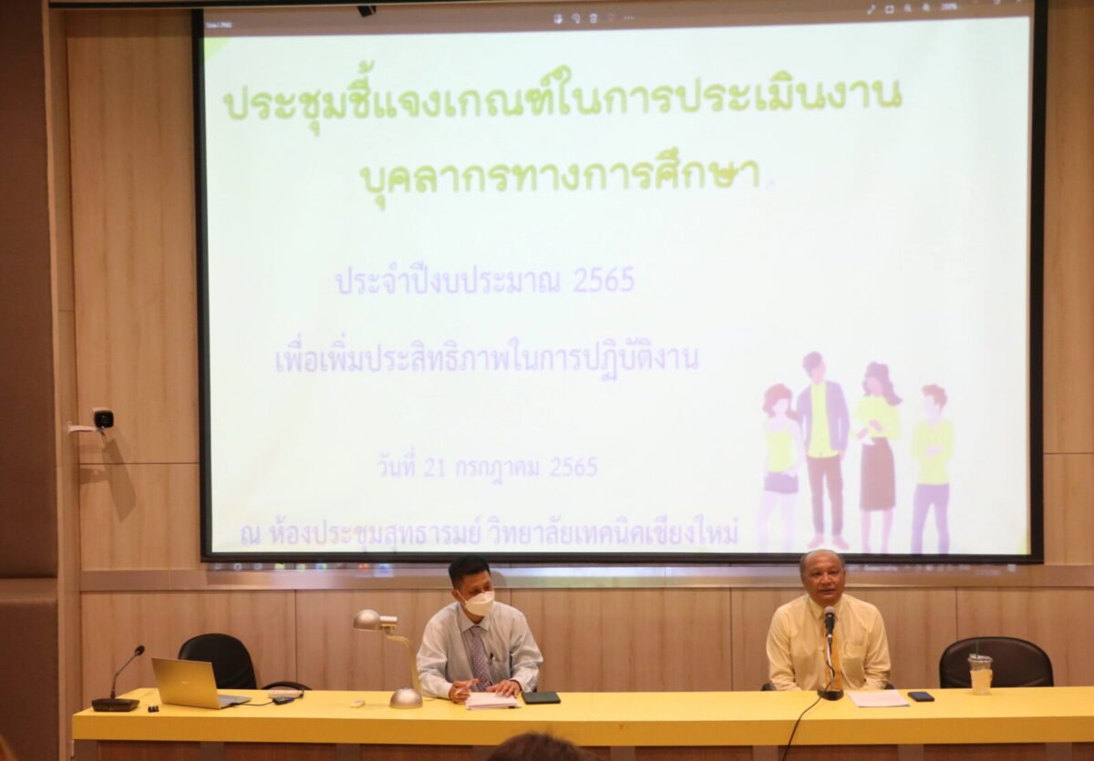 วันที่ 21 กรกฎาคม 2565 นายวัชรพงศ์ ฝั้นติ๊บ ผู้อำนวยการวิทยาลัยเทคนิคเชียงใหม่ เป็นประธานการประชุมบุคลากรทางการศึกษา แม่บ้าน และนักการภารโรง ด้วยวิทยาลัยเทคนิคเชียงใหม่ชี้แจงเกณฑ์การประเมินผลการปฏิบัติงาน ของบุคลากรทางการศึกษา เพื่อให้เกิดผลดีต่อทางราชการ ณ ห้องประชุมสุทธารมย์ วิทยาลัยเทคนิคเชียงใหม่