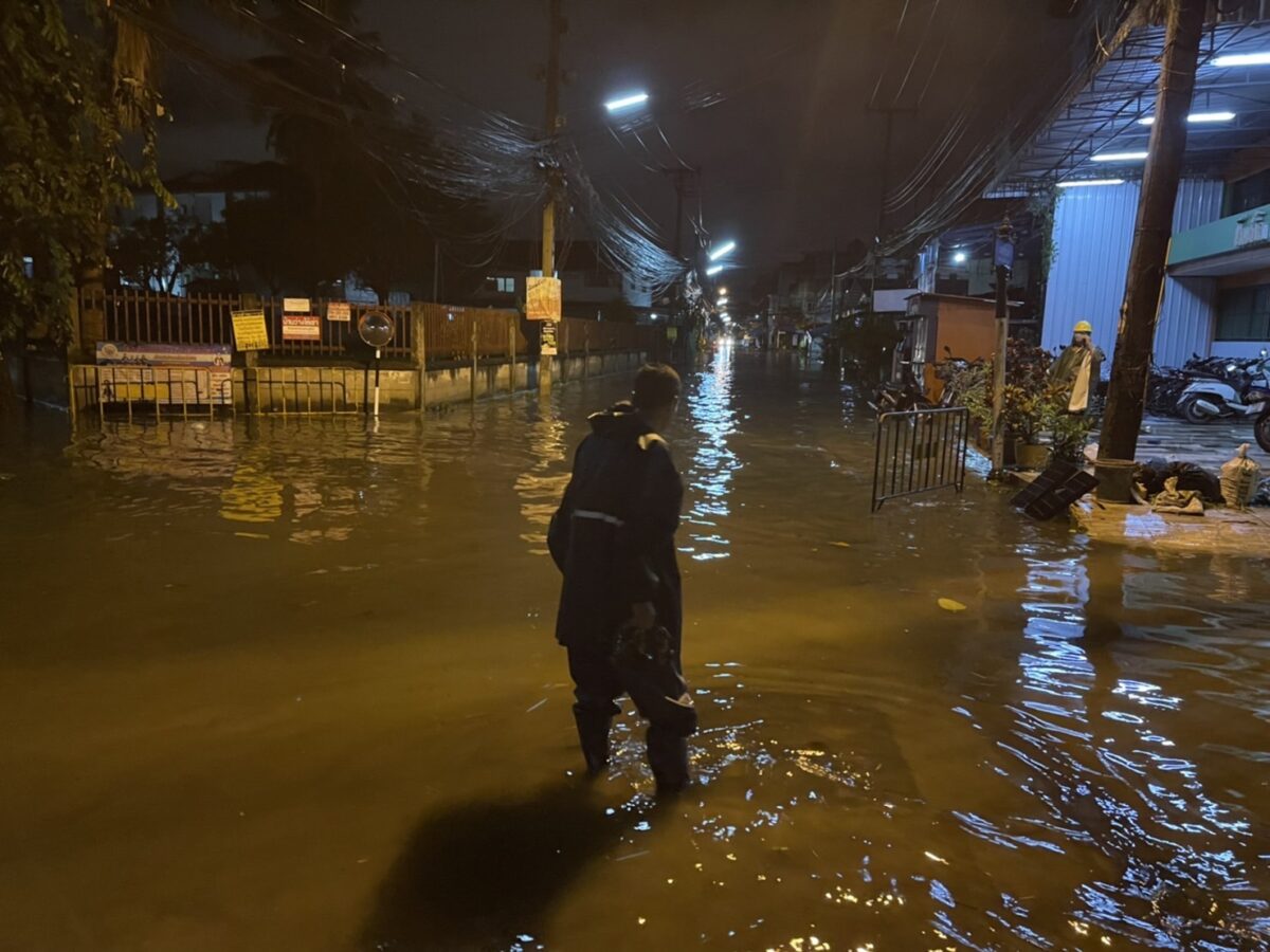 ซึ่งจากการลงพื้นที่ พบว่ามีน้ำท่วมขังสูงประมาณ 10-40 เซนติเมตร รถจักรยานยนต์และรถเล็กสามารถสัญจรได้ และสถานการณ์ได้คลี่คลายเข้าสู่ภาวะปกติ ในเวลาประมาณ 02.00 น.