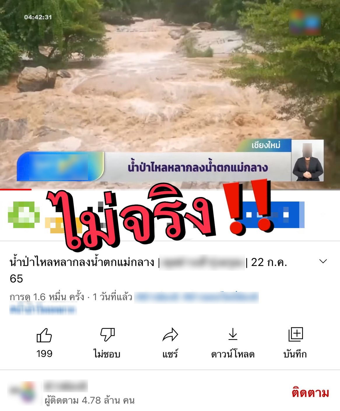 แจง ภาพข่าวน้ำป่าไหลหลากลงน้ำตกแม่กลาง ท่วมถนน พื้นที่เกษตร ที่ อ.จอมทอง ไม่เป็นความจริง