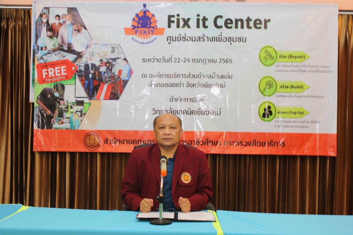 วันที่ 23 กรกฎาคม 2565 นายวัชรพงศ์ ฝั้นติ๊บ ผู้อำนวยการวิทยาลัยเทคนิคเชียงใหม่ รักษาราชการแทนผู้อำนวยการสถาบันการอาชีวศึกษาภาคเหนือ 1 ให้เกียรติเป็นประธานในพิธีเปิดและลงพื้นที่เพื่อตรวจเยี่ยมให้กำลังใจคณะดำเนินงาน “โครงการบูรณาการการพัฒนาทางวิชาชีพกับการเสริมสร้างคุณลักษณะอันพึงประสงค์ของผู้เรียนอาชีวศึกษา (Fix It-จิตอาสา) วิทยาลัยเทคนิคเชียงใหม่ ประจำปีงบประมาณ พ.ศ. 2565” ณ พื้นที่องค์การบริหารส่วนตำบลบ้านแอ่น ตำบลบ้านแอ่น อำเภอดอยเต่า