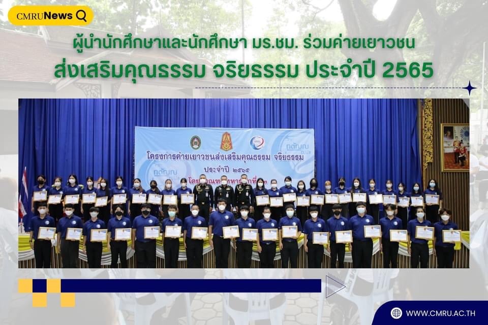ผู้นำนักศึกษา และนักศึกษา มร.ชม. ร่วมค่ายเยาวชนส่งเสริมคุณธรรม-จริยธรรม ประจำปี 2565