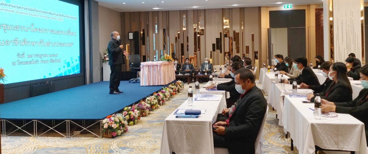 วันพุธที่ 27 กรกฎาคม 2565 นายวัชรพงศ์ ฝั้นติ๊บ ผู้อำนวยการวิทยาลัยเทคนิคเชียงใหม่ ประธานกรรมการอาชีวศึกษาจังหวัดเชียงใหม่ รักษาการผู้อำนวยการสถาบันการอาชีวศึกษาภาคเหนือ 1 กล่าวต้อนรับผู้เข้าร่วมประชุม และร่วมประชุมเสวนา โครงการแลกเปลี่ยนด้านอาชีวศึกษากับต่างประเทศ ณ ห้องประชุมช้างคลาน 1 โรงเเรมอโมราท่าแพ เชียงใหม่
