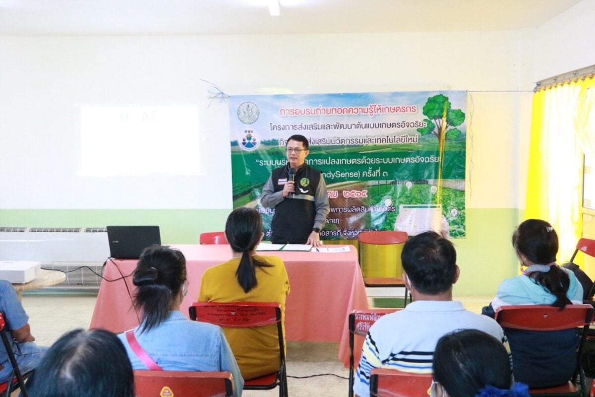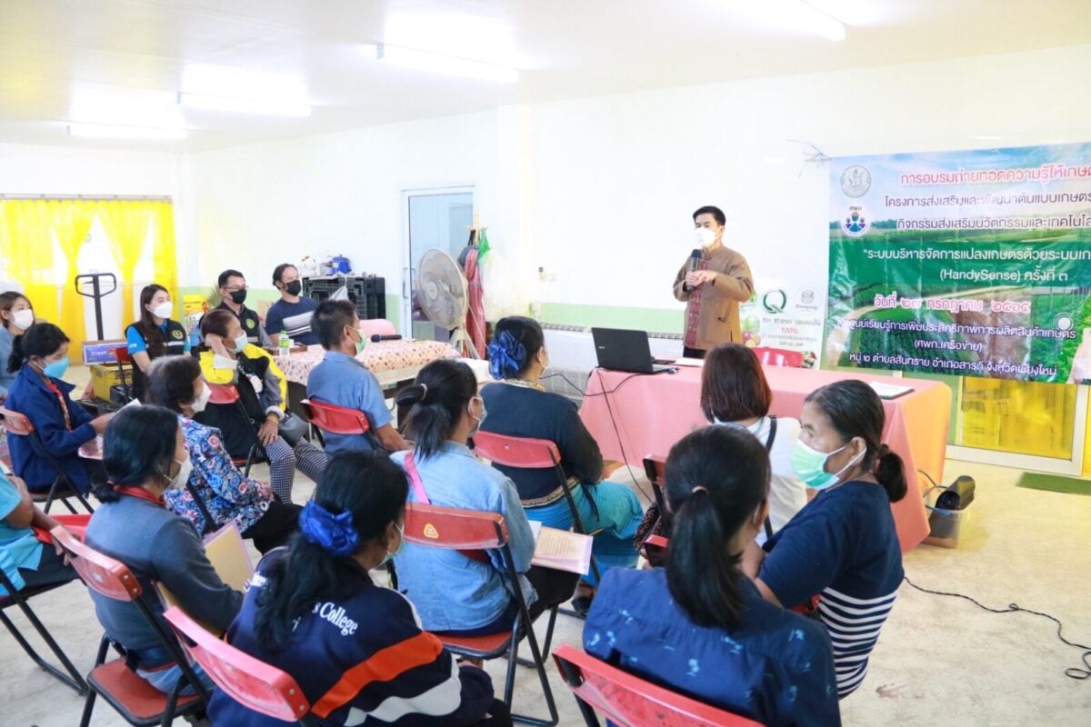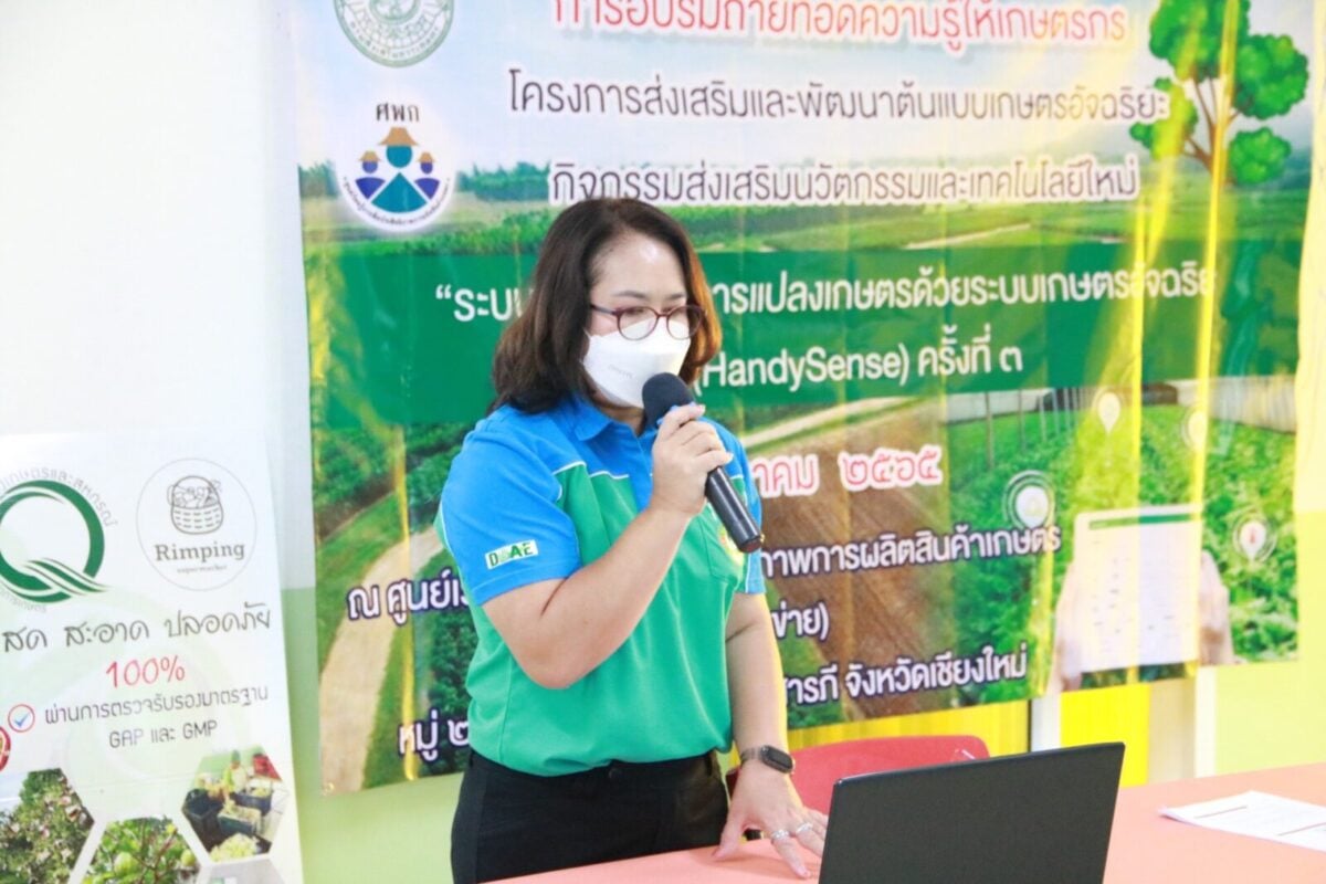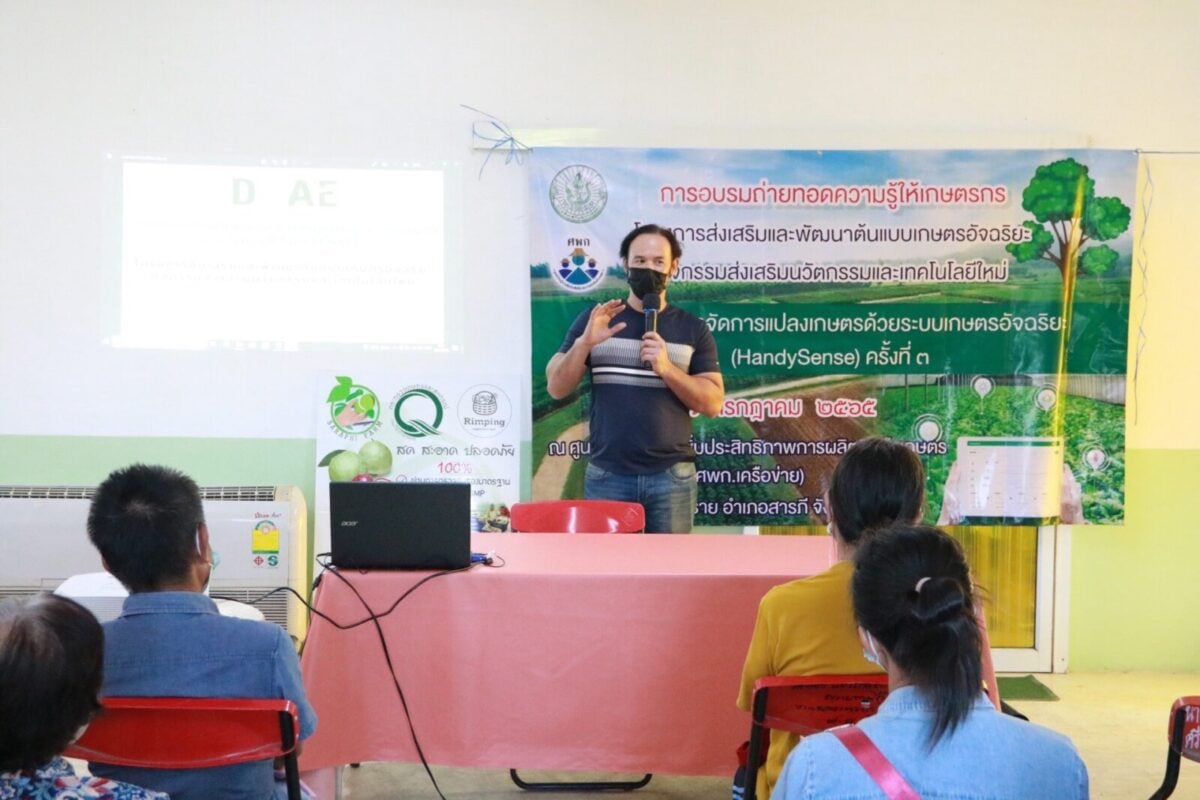 นายเจษฎา กาพย์ไชย หัวหน้ากลุ่มยุทธศาสตร์และสารสนเทศ กล่าวว่ากรมส่งเสริมการเกษตร ได้มีความร่วมมือส่งเสริมนวัตกรรมและเทคโนโลยีใหม่กับศูนย์เทคโนโลยีอิเล็กทรอนิกส์และคอมพิวเตอร์แห่งชาติ และธนาคารเพื่อการเกษตรและสหกรณ์การเกษตร (ธ.ก.ส.) ในการนำองค์ความรู้และเทคโนโลยีเกษตรอัจฉริยะ คือ ระบบบริหารจัดการแปลงเกษตรด้วยระบบเกษตรอัจฉริยะ (HandySense) ซึ่งเป็นระบบที่รวบรวมเทคโนโลยี ที่มีความแม่นยำเพื่อเข้ามาช่วยในกระบวนการเพาะปลูก ประกอบด้วย เซนเซอร์วัดค่าอุณหภูมิ ความเข้มแสง ความชื้นสัมพัทธ์ และความชื้นของดิน ซึ่งเกษตรกรสามารถควบคุมคุณภาพการผลิต ปริมาณของผลผลิต การลดต้นทุน และแรงงานได้มากขึ้น ทั้งยังสามารถติดตามและควบคุมการทำงานของระบบฯ ได้จากพื้นที่ห่างไกล ผ่านทางแอปพลิเคชันบนสมาร์ทโฟน มาส่งเสริมและพัฒนาความรู้และทักษะในการพัฒนาแปลงเรียนรู้ให้กับเกษตรกรในพื้นที่