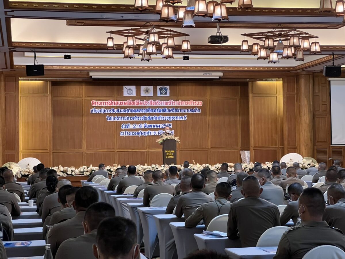 2 ส.ค.65 เวลา 08.30 น. พล.ต.ต.พฤทธิพงษ์ ประยูรศิริ รอง ผบช.ภ.5 เป็นประธานพิธีเปิดโครงการฝึกอบรม การเพิ่มประสิทธิภาพข้าราชการตํารวจเกี่ยวกับการสืบสวนขยายผล ตรวจยึดทรัพย์สินเครือข่ายยาเสพติด ให้กับข้าราชการตํารวจในสังกัดตํารวจภูธรภาค 5 โดยมี พ.ต.อ.ทรงกฤช อ่อนตะไคร้ รอง ผบก.ภ.จ.เชียงใหม่ และเจ้าหน้าที่ตำรวจผู้เข้ารับการอบรมร่วมพิธีฯ โดยการดำเนินการการฝึกอบรมตามโครงการฯ ได้รับการสนับสนุนงบประมาณตามแผนปฏิบัติการ ด้านการแก้ไขปัญหายาเสพติด ชายแดนภาคเหนือแบบเบ็ดเสร็จ (พ.ศ.2562 – 2565)จากสำนักงานป้องกันและปราบปรามยาเสพติดภาค 5 โดยมีผู้เข้ารับการฝึกอบรม ประกอบไปด้วยข้าราชการตำรวจชั้นสัญญาบัตร สายงานสอบสวนและสายงานสืบสวนในสังกัดตำรวจภูธรภาค 5 จำนวน 402 นาย วิทยากร 17 นาย และเจ้าหน้าที่ 8 นาย รวมทั้งสิ้น 427 นาย ทำการฝึกอบรมในระหว่าง วันที่ 2 – 4 สิงหาคม 2565 ณ โรงแรมคุ้มภูคำ อำเภอเมือง จังหวัดเชียงใหม่