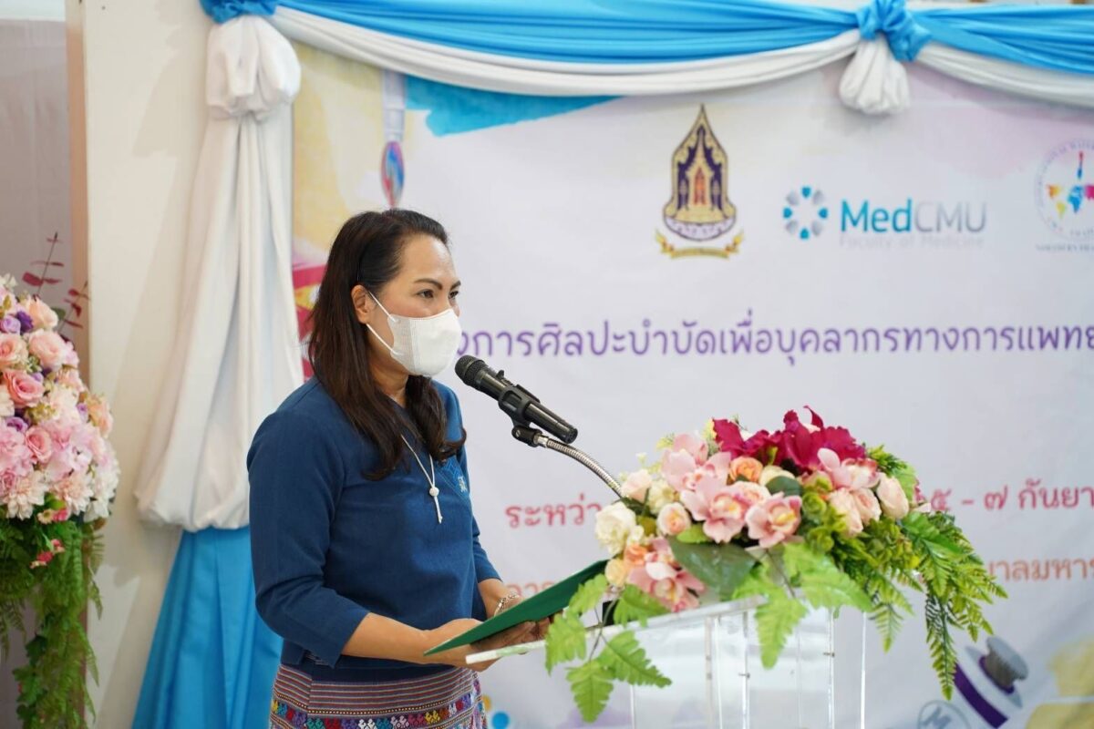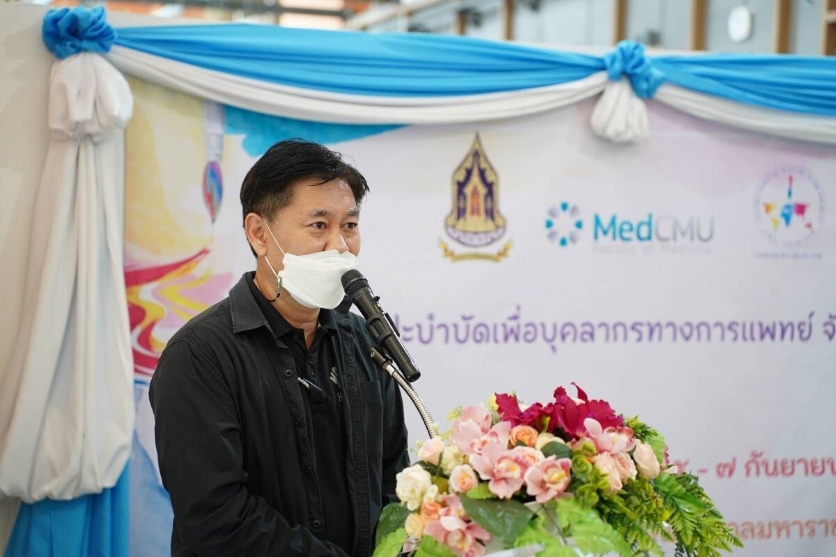 ศ.(เชี่ยวชาญพิเศษ)นพ.บรรณกิจ โลจนาภิวัฒน์ คณบดีคณะแพทยศาสตร์ มช. กล่าวต้อนรับผู้ร่วมงาน ในพิธีเปิดโครงการศิลปะบำบัดเพื่อบุคลากรทางการแพทย์ จังหวัดเชียงใหม่ โดยมีคุณศักดิ์ชัย คุณานุวัฒน์ชัยเดช รองผู้ว่าราชการจังหวัดเชียงใหม่ เป็นประธานในพิธี , คุณสิริรัตน์ โอภาพ วัฒนธรรมจังหวัดเชียงใหม่ กล่าวรายงานวัตถุประสงค์ของการจัดกิจกรรม โดยในงานจัดให้มีกิจกรรมถ่ายทอดสุนทรียภาพ โดยการวาดภาพด้วยสีน้ำ วิทยากรโดยคุณรัชพล ศิรดิษย์ ประธานสมาคมสีน้ำนานาชาติ พร้อมคณะ ให้แก่บุคลากรของคณะแพทยศาสตร์ มช. ได้ร่วมวาดภาพสีน้ำ