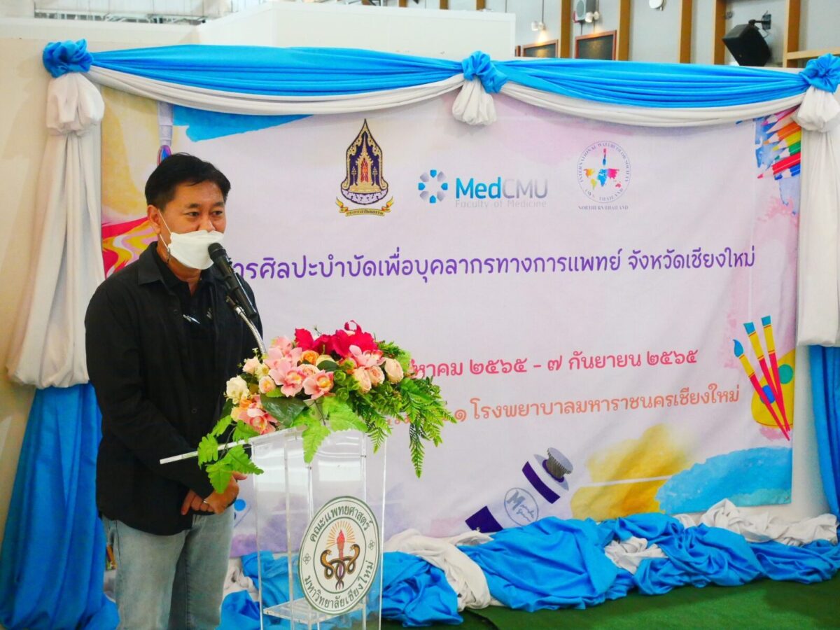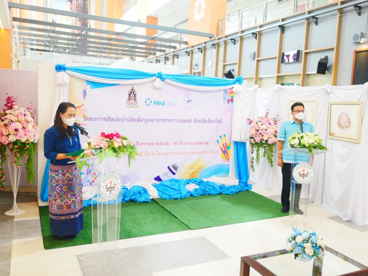 เวลา 13.00 น.พิธีเปิดโครงการศิลปะบำบัด เพื่อบุคลากรทางการแพทย์จังหวัดเชียงใหม่ กล่าวต้อนรับโดย ศ.(เชี่ยวชาญพิเศษ)นพ.บรรณกิจ โลจนาภิวัฒน์ คณบดีคณะแพทยศาสตร์ มหาวิทยาลัยเชียงใหม่ กล่าววัตถุประสงค์โดย นายรัชพล ศิรดิษย์ ประธานสมาคมสีน้ำโลก ประจำภาคเหนือ(IWS Northern Thailand) กล่าวรายงานโครงการโดย นางสิริรัตน์ โอภาพ วัฒนธรรมจังหวัดเชียงใหม่ และกล่าวเปิดโครงการโดย นายศักดิ์ชัย คณานุวัฒน์ชัยเดช รองผู้ว่าราชการจังหวัดเชียงใหม่