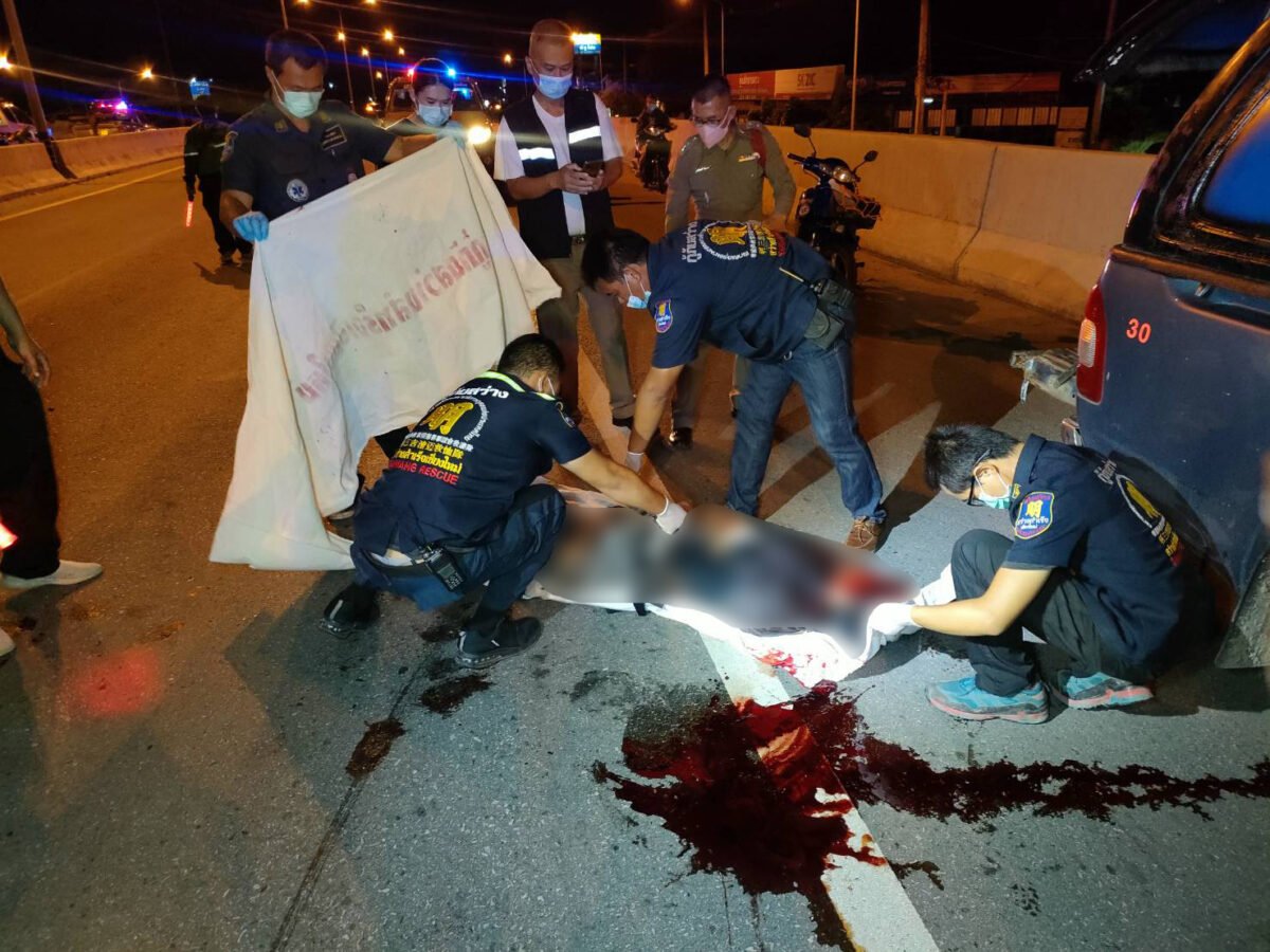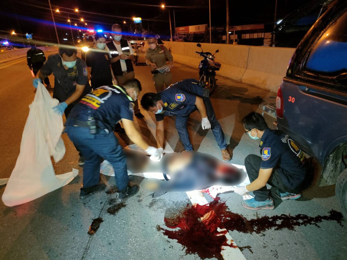 ที่บริเวณบนสะพานเลนตรงกันข้าม มีผู้เสียชีวิตนอนคว่ำหน้า สภาพแขนขาหัก เลือดไหลนองเต็มพื้น เป็นชายวัยรุ่น ตรวจค้นในกระเป๋าไม่มีเอกสารติดตัวแต่อย่างใด อายุประมาณ 20-25 ปี ไม่ทราบชื่อ