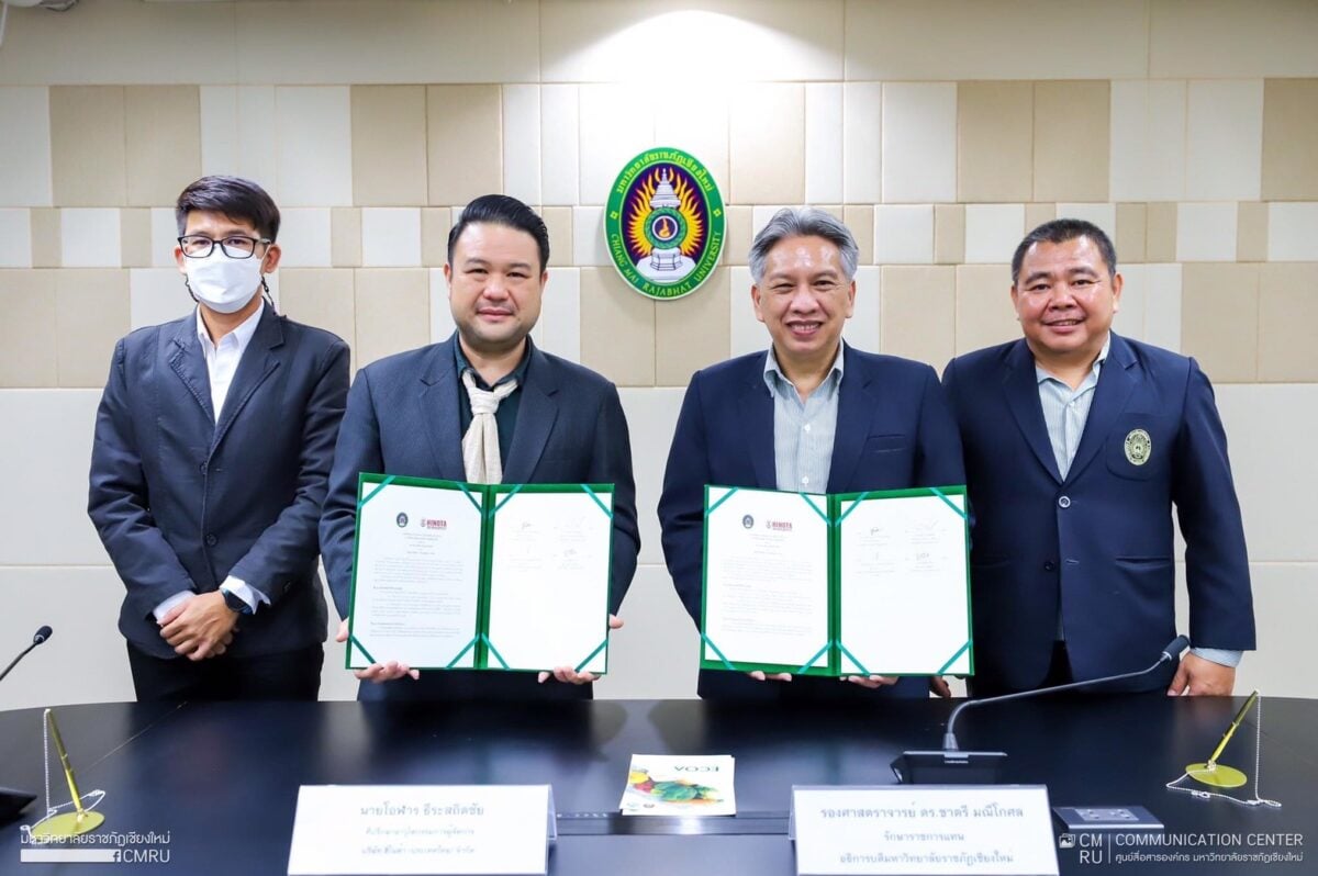 มหาวิทยาลัยราชภัฏเชียงใหม่ ลงนามบันทึกข้อตกลง ว่าด้วยความร่วมมือทางวิชาการ การวิจัยและพัฒนาปัจจัยการผลิตอินทรีย์ กับบริษัท ฮิโนต้า(ประเทศไทย)จำกัด นำผลงานวิจัยขับเคลื่อนสู่เชิงพาณิชย์