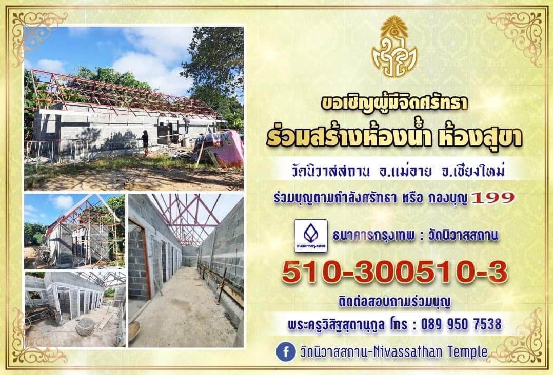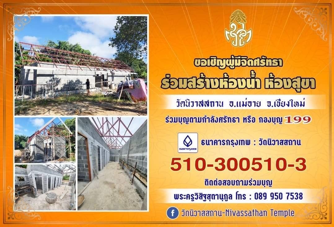 ขอเชิญผู้มีจิตศรัทธาร่วมสร้างห้องน้ำและห้องสุขา ณ วัดนิวาสสถาน ต.แม่อาย อ.แม่อาย จ.เชียงใหม่