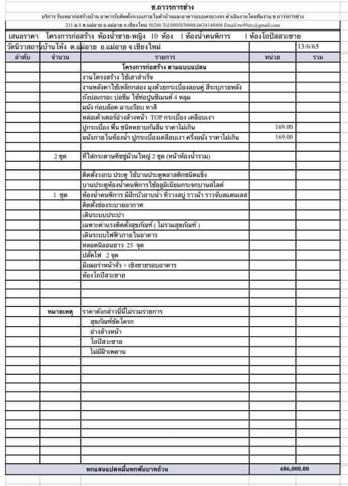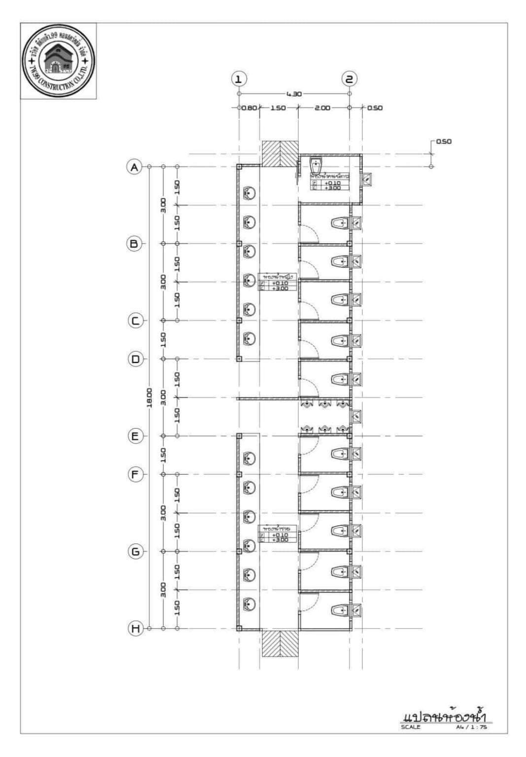 สร้างจำนวน 11 ห้อง ขนาดพื้นที่ต่อห้อง 2 เมตร × 1.50 เมตร