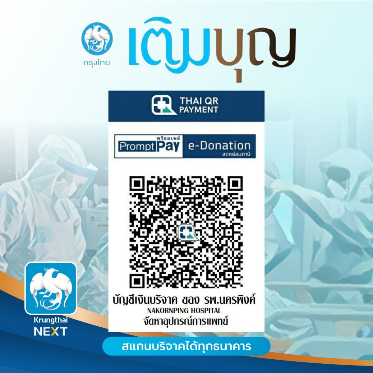 ชื่อบัญชี : บัญชีเงินบริจาคของ รพ.นครพิงค์