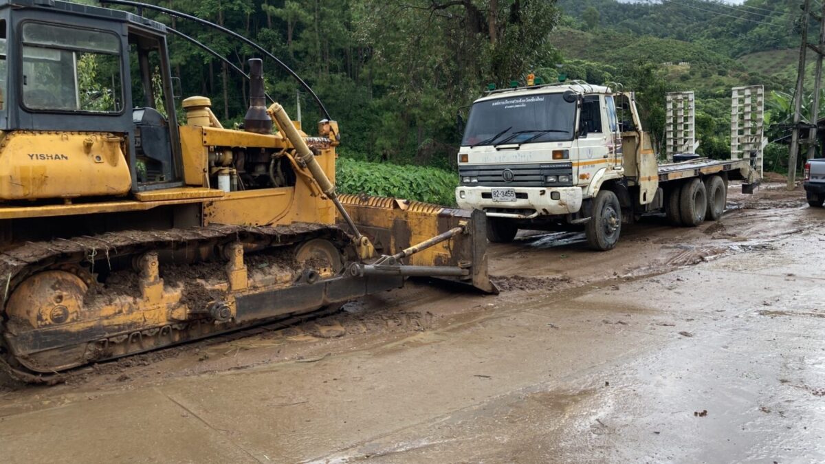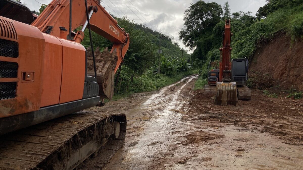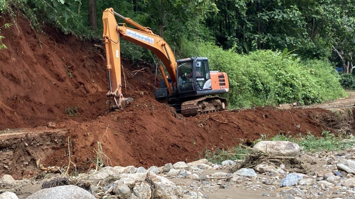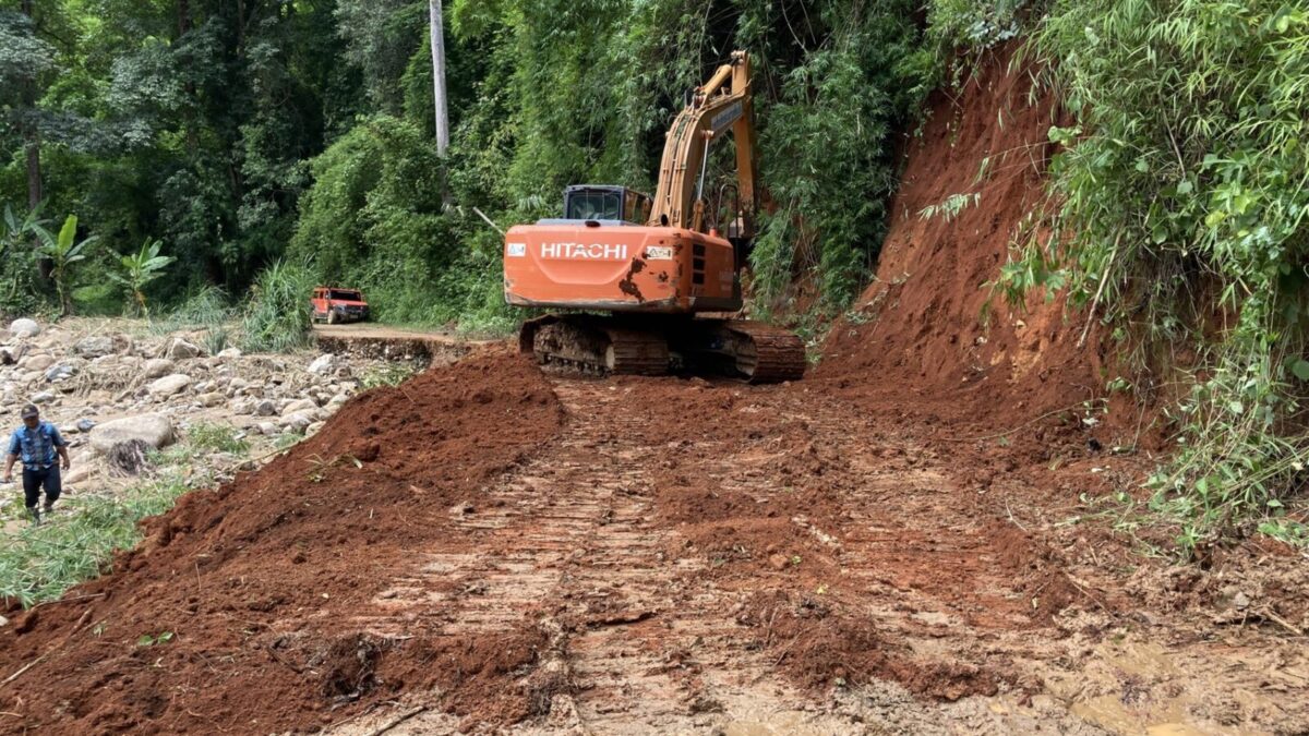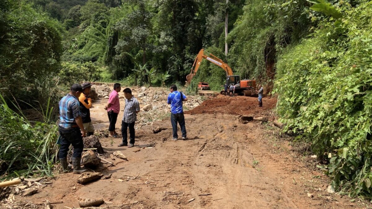 วันนี้ทางส่วนราชการ องค์การบริหารส่วนตำบลศรีดงเย็น องค์การบริหารส่วนจังหวัดเชียงใหม่ ศูนย์พัฒนาปิโตรเลียมภาคเหนือ ฝ่ายปกครองไชยปราการ ร่วมบูรณาการนำเครื่องจักรกลหนัก รถแมคโฮร 4 คัน แทรกเตอร์ 1 คัน กำลังลำเลียงเข้าสร้างซ่อมถนนเข้าหมู่บ้านแล้ว ด้วยสถานการณ์ที่ถนนเข้ายากต่อการขนลากบรรทุกเพราะเป็นเส้นทางตามแนวเขาจึงขนเครื่องจักรกลยาก รถแมคโฮร ต้องเดินตีนตะขาบเข้าพื้นที่ 7 กิโลเมตร และต้องหลบเลี่ยงสะพานไม้ ใช้เวลาลำเลียงเข้าพื้นที่เพื่อไม่ให้สิ่งที่มีอยุ่แล้วเสียหายเพิ่ม วันนี้รถแมคโฮร องค์การบริหารส่วนตำบลศรีดงเย็น เข้าเคียรพื้นที่ก่อน ทำการซ่อมแซมไปบางส่วน และรถรถแมคโฮรขององค์การบริหารส่วนจังหวัดเชียงใหม่ ศูนย์พัฒนาปิโตรเลียมภาคเหนือ กำลังลำเลียงเข้าพื้นที่ ถนนบางส่วนยังพังทลายลงมาอย่างต่อเนื่องเพราะดินอุ้มน้ำเต็มที่แล้วไม่สามารถยึดเกาะได้