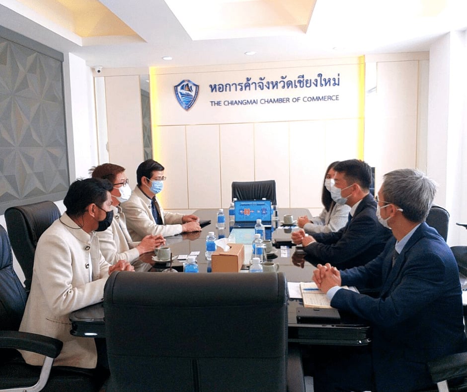วันที่ 9 สิงหาคม 2565 รองประธานกรรมการหอการค้าจังหวัดเชียงใหม่ (ดร.กอบกิจ อิสรชีววัฒน์ และ นายวรพรรธน์ ชุติมา) พร้อมด้วย นายปรกฤษฏิ์ สายหัสดี กรรมการรองเลขาธิการและประธาน YEC หอการค้าจังหวัดเชียงใหม่ ให้การต้อนรับ คณะจากสภาส่งเสริมการส่งเสริมการส่งออกไต้หวัน ประจำประเทศไทย เนื่องในโอกาสเดินทางเยือนจังหวัดเชียงใหม่ เพื่อแนะนำตัวและหารือเกี่ยวกับการค้าระหว่างประเทศไทยกับไต้หวัน ณ ห้องประชุม 2 ชั้น 3 สำนักงานหอการค้าจังหวัดเชียงใหม่