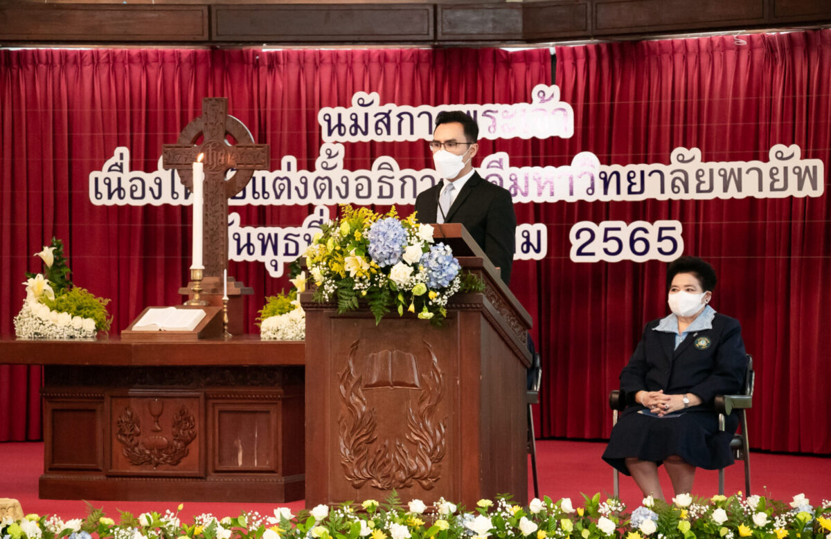 มหาวิทยาลัยพายัพ จัดนมัสการพระเจ้าเนื่องในพิธีแต่งตั้ง อ.อภิชา อินสุวรรณ เข้าดำรงตำแหน่ง อธิการบดีมหาวิทยา ลัยพายัพ เมื่อวันพุธที่ 10 สิงหาคม 2565 ณ โบสถ์เฮ็นรี ลูซ มหาวิทยาลัยพายัพ เขตแม่คาว