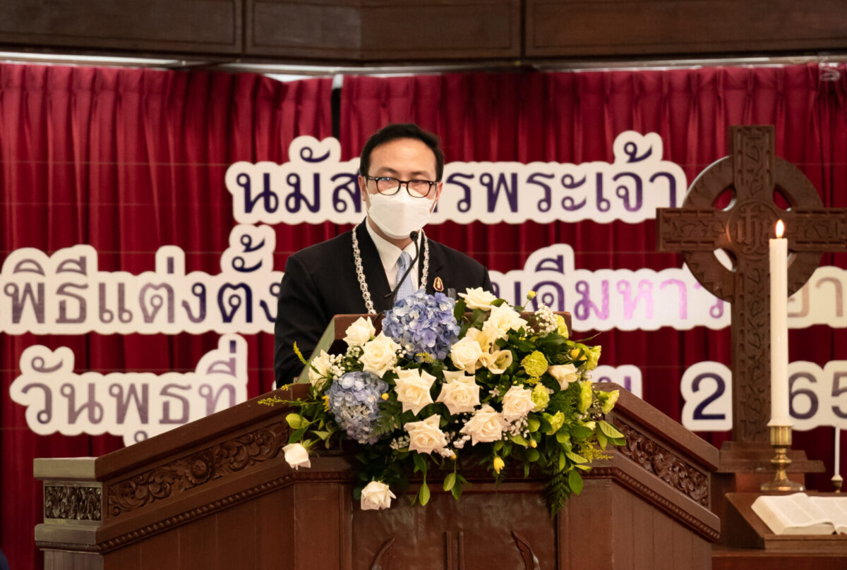โดยได้รับเกียรติจาก ศาสนาจารย์ พงษ์ศักดิ์ สินธุมัด กรรมการสภามหาวิทยาลัยพายัพ อธิษฐานสรรเสริญและขอการทรงนำจากพระเจ้า เทศนา โดย ศาสนาจารย์ วิรัช โกยดุลย์ รองประธานมูลนิธิแห่งสภาคริสตจักรในประเทศไทย กล่าวประวัติและเบิกตัวอธิการบดี โดย ดร. สายสม วงศาสุลักษณ์ ประธานคณะกรรมการสรรหาอธิการบดีมหาวิทยาลัยพายัพ และกรรมการสภามหาวิทยาลัยพายัพ สวมตราสัญลักษณ์ประจำตำแหน่งอธิการบดี โดย ศาสนาจารย์ สยาม ม่วงศักดิ์ เลขาธิการมูลนิธิแห่งสภาคริสตจักรในประเทศไทย และ นายสเปญ จริงเข้าใจ นายกสภามหาวิทยาลัยพายัพ ขอพระพร โดย ศาสนาจารย์ สยาม ม่วงศักดิ์ เลขาธิการมูลนิธิแห่งสภาคริสตจักรในประเทศไทย