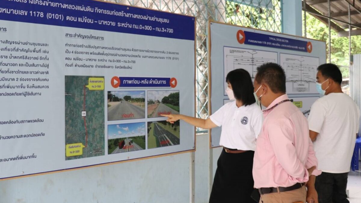 ทั้งนี้ในการประชาคม เปิดรับฟังความคิดเห็น ข้อเสนอแนะ ล่าสุด มีนายสงัด บูรณะโชติ นายอำเภอเชียงดาว เป็นประธาน โดยมี นายฐิติพงศ์ จิระเจริญวงศ์ วิศวกรชำนาญงาน ส่วนสำรวจและออกแบบ สำนักทางหลวงที่ 1 พร้อมคณะ ชี้แจงรายละเอียนดโครงการต่อผู้นำชุมชน และประชาชน ตลอดสายทางที่จะขยายถนนจาก 2 เลนเป็น 4 เลน รับทราบรายละเอียดและแผนงาน ณ หอประชุม ร.ร.ชุมชนบ้านเมืองงาย อ.เชียงดาว เชียงใหม่