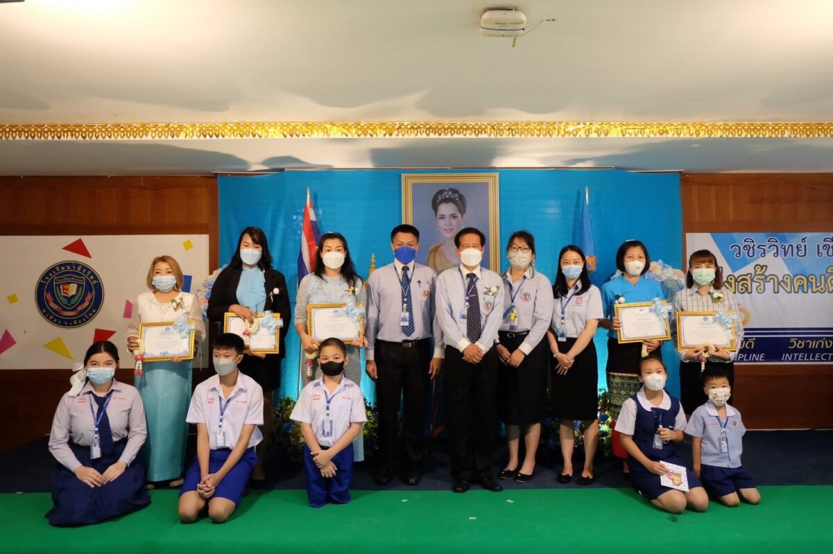 ณ อาคารอำนวยการ ชั้น 3 โรงเรียนวชิรวิทย์ เชียงใหม่ ทั้งนี้นายวรทัศน์ บุญโคตร ผู้อำนวยการโรงเรียนได้ให้เกียรติในการมอบเกียรติบัตรเชิดชูเกียรติให้กับแม่ดีเด่นประจำปีการศึกษา 2565 ดังนี้ 1.) นางสาวอัจฉราภรณ์ สินวัฒนาวงศ์ คุณแม่ของ ด.ช. ธีธัช สินวัฒนาวงศ์ นักเรียนชั้น อ.3/1 2.) นางเฟื่องลัดดา ปัญทุมมี คุณแม่ของ ด.ญ.คำขวัญ คำปลอด นักเรียนชั้น ป.3/2 3.) นางประทุมรัตน์ ใจสุข คุณแม่ของ ด.ช.ศุภกร ใจสุข นักเรียนชั้น ป.4/4 4.) นางสาวรุ่งธิวา ธาตุอินจันทร์ คุณแม่ของนายวาที ธาตุอินจันทร์ นักเรียนชั้น ม.3/ 1 5.) นางสายรุ้ง จอมธรรม คุณแม่ของนางสาวธิดา จอมธรรม นักเรียนชั้น ม.6/2