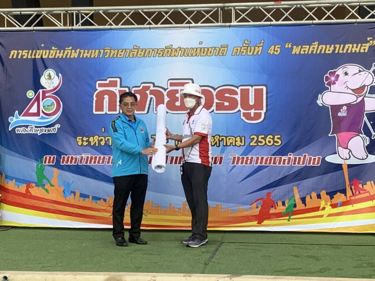รองหมู ดร. จารุวัฒน์ สัตยานุรักษ์ รองอธิการบดี มกช. เชียงใหม่ ส่งนักกีฬายิงธน บุกเมืองรถม้า มกช. ลำปาง เข้าร่วมการแข่งขันกีฬามหาวิทยาลัยการกีฬาแห่งชาติ “พลศึกษาเกมส์” ครั้งที่ 45 รอบ Championship ชนิดกีฬาลีลาศ ณ ม. การกีฬาแห่งชาติ ว. ลำปาง