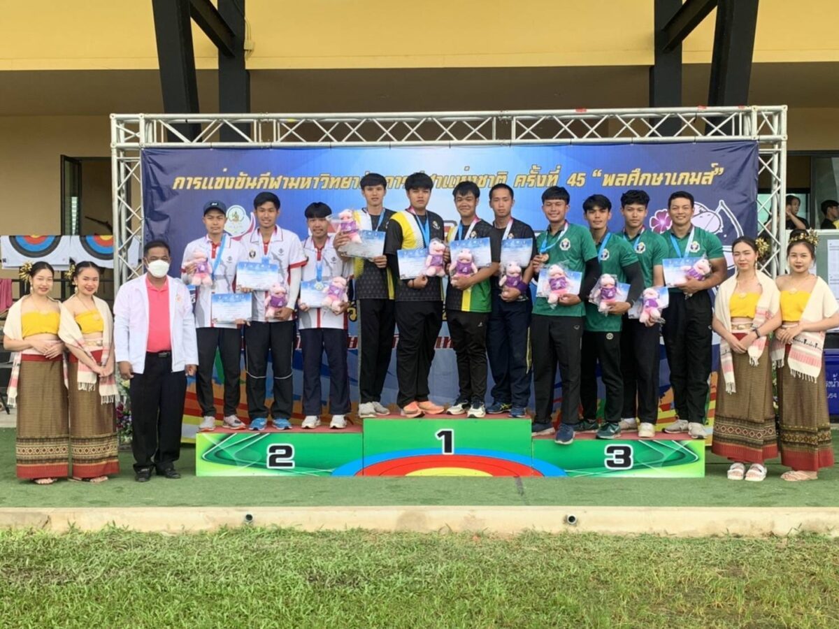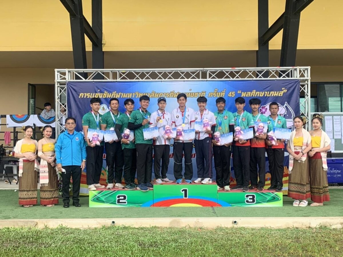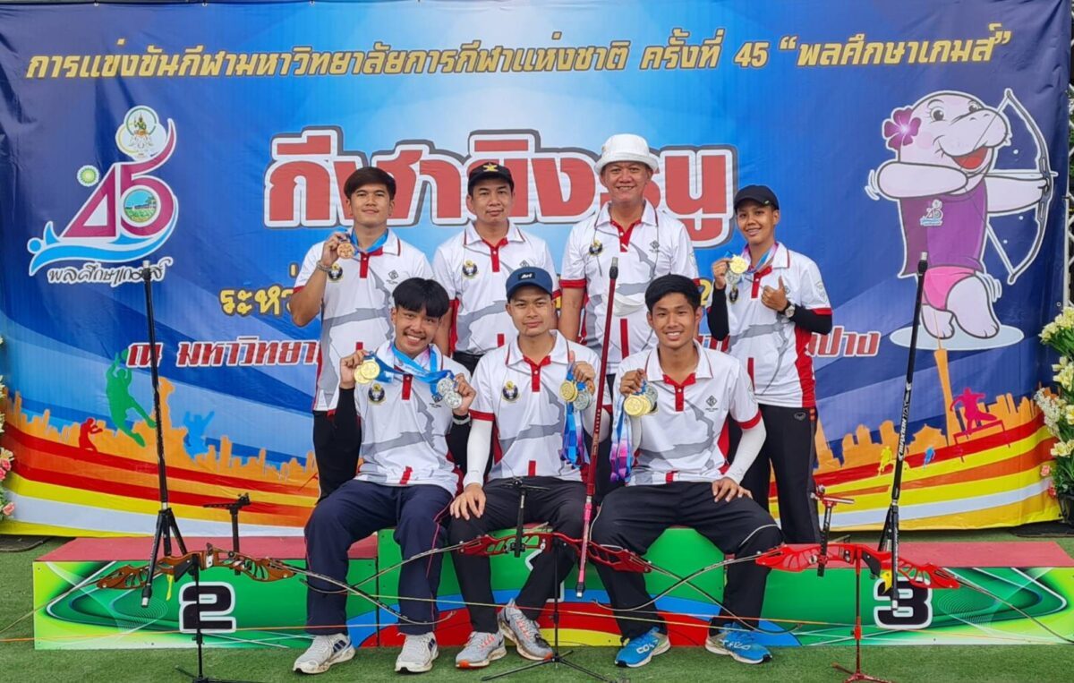 เหรียญทอง จำนวน 4 เหรียญเหรียญเงิน จำนวน 3 เหรียญเหรียญทองแดง จำนวน 2 เหรียญขอขอบพระคุณ รองอธิการบดี ดร.จารุวัฒน์ สัตยานุรักษ์ คณะผู้บริหาร คณาจารย์ และบุคลากรทุกท่าน ที่ให้การสนับสนุนและกำลังใจแก่ทีมกีฬายิงธนู จนประสบความสำเร็จในการแข่งขันกีฬา พลศึกษาเกมส์ ครั้งที่ 45 รอบ Championship ครั้งนี้