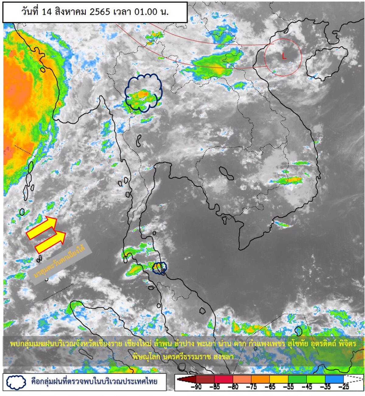 อุณหภูมิสูงสุด 34-35 องศาเซลเซียส ลมตะวันตกเฉียงใต้ ความเร็ว 10-20 กม./ชม.