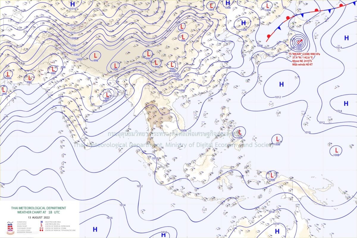 ลักษณะอากาศทั่วไป พยากรณ์อากาศ 24 ชั่วโมงข้างหน้า มรสุมตะวันตกเฉียงใต้กำลังอ่อนพัดปกคลุมทะเลอันดามัน ประเทศไทย และอ่าวไทย ลักษณะเช่นนี้ทำให้ประเทศไทยยังคงมีฝนฟ้าคะนองเกิดขึ้นได้ ขอให้ประชาชนระวังอันตรายจากฝนฟ้าคะนองที่อาจจะเกิดขึ้นได้ในระยะนี้ไว้ด้วย สำหรับคลื่นลมบริเวณทะเลอันดามันและอ่าวไทยมีกำลังอ่อน โดยมีคลื่นสูงประมาณ 1 เมตร บริเวณที่มีฝนฟ้าคะนองคลื่นสูงมากกว่า 1 เมตร