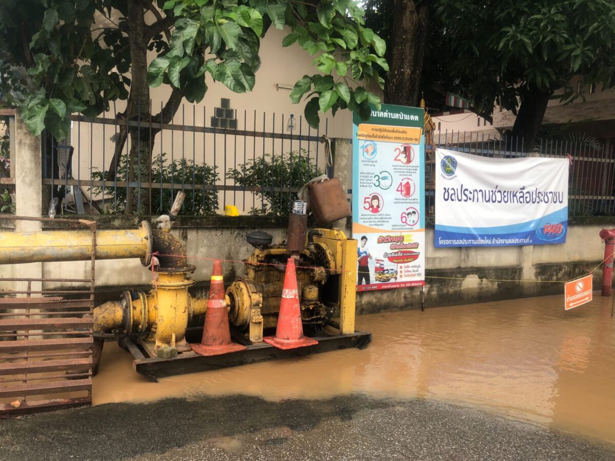 ซึ่งมีบ้านเรือนประชาชนจำนวน 8 หลัง ทำให้ชาวบ้านติดอยู่ในบ้าน ขณะเดียวกันทางเทศบาลนครเชียงใหม่ เร่งสำรวจท่อระบายน้ำ จากชุมชนที่ไหลลงสู่แม่น้ำปิงเกรงว่า น้ำจะย้อนเข้ามาทางท่อระบายน้ำ นำกระสอบทรายไปอุดท่อป้องกัน แต่ทั้งนี้ระดับน้ำพื้นที่อำเภอทางตอนเหนือ ของจังหวัดเชียงใหม่ เริ่มทรงตัวและบางจุดมีระดับน้ำลดลง ทางชลประทานจังหวัดเร่งเปิดประตูระบายน้ำทั้ง 6 บาน ในแม่น้ำปิงบริเวณประตูท่าวังตาล เพื่อเร่งระบายน้ำ ไม่ให้กระทบกับชุมชนเมือง คาดว่าหากไม่มีฝนตกลงมาซ้ำ ระดับน้ำน่าจะขึ้นสูงสุดไม่เกิน 3.50 เมตร บริเวณจุดวัดP1 เชิงสะพาน นวรัฐ และน่าจะทรงตัวและค่อยลดลง เรื่อยๆ