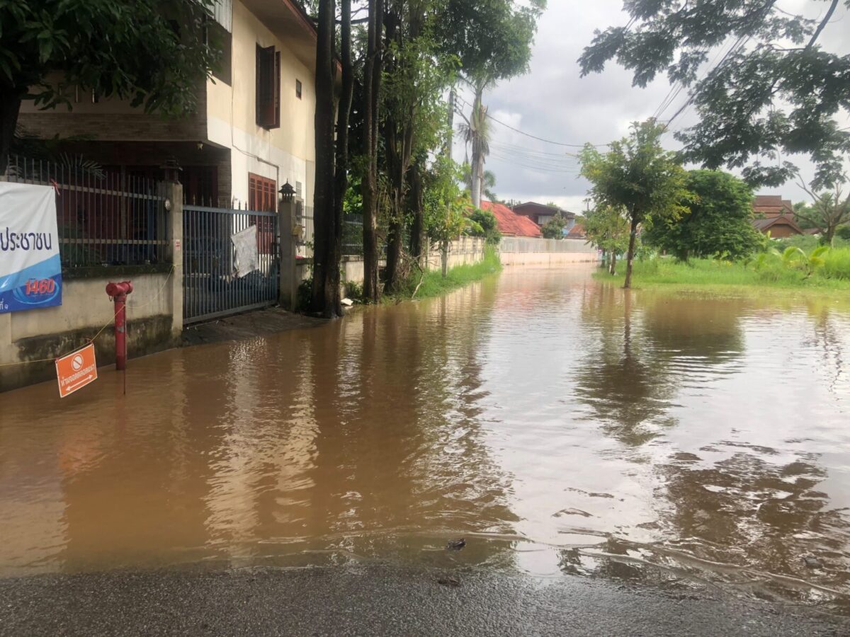 แม่น้ำปิง ที่ไหลผ่านตัวเมืองเชียงใหม่เพิ่มสูงขึ้น ท่วมบ้านเรือนประชาชนที่อยู่ริมตลิ่งหน้าชุมชนวัดเกตการาม ระดับน้ำสูงเกือบ 1 เมตร ชาวบ้านติดอยู่ในบ้าน ขณะที่บริเวณจุดวัดระดับน้ำ P1 สะพานนวรัฐในตัวเมืองเชียงใหม่ อยู่ที่ 3.47 เมตร